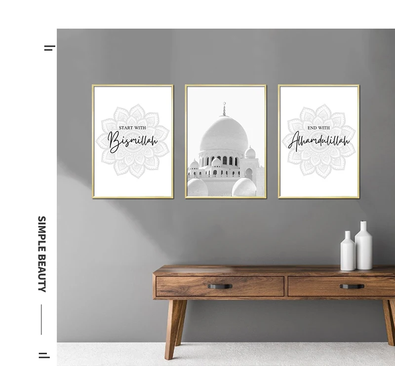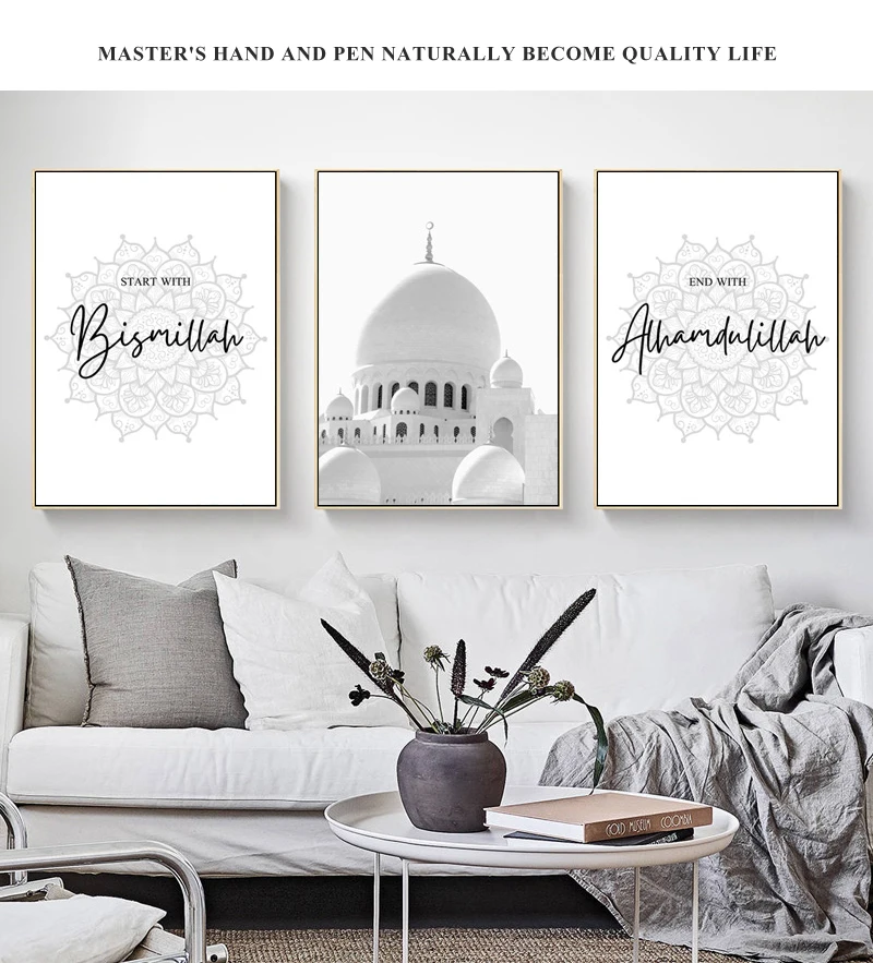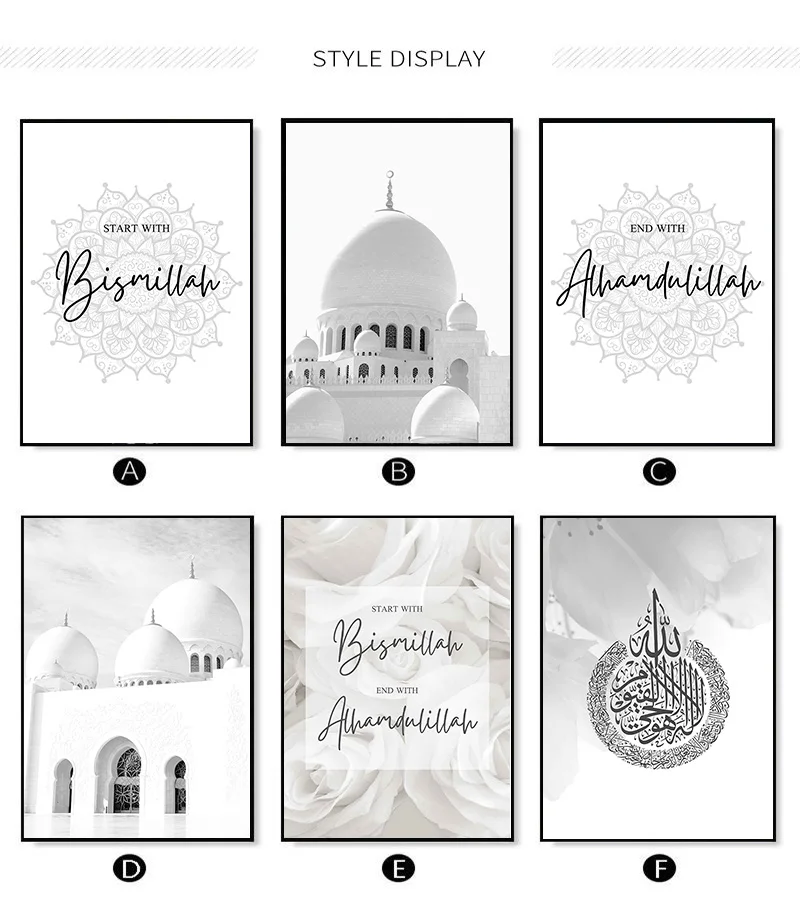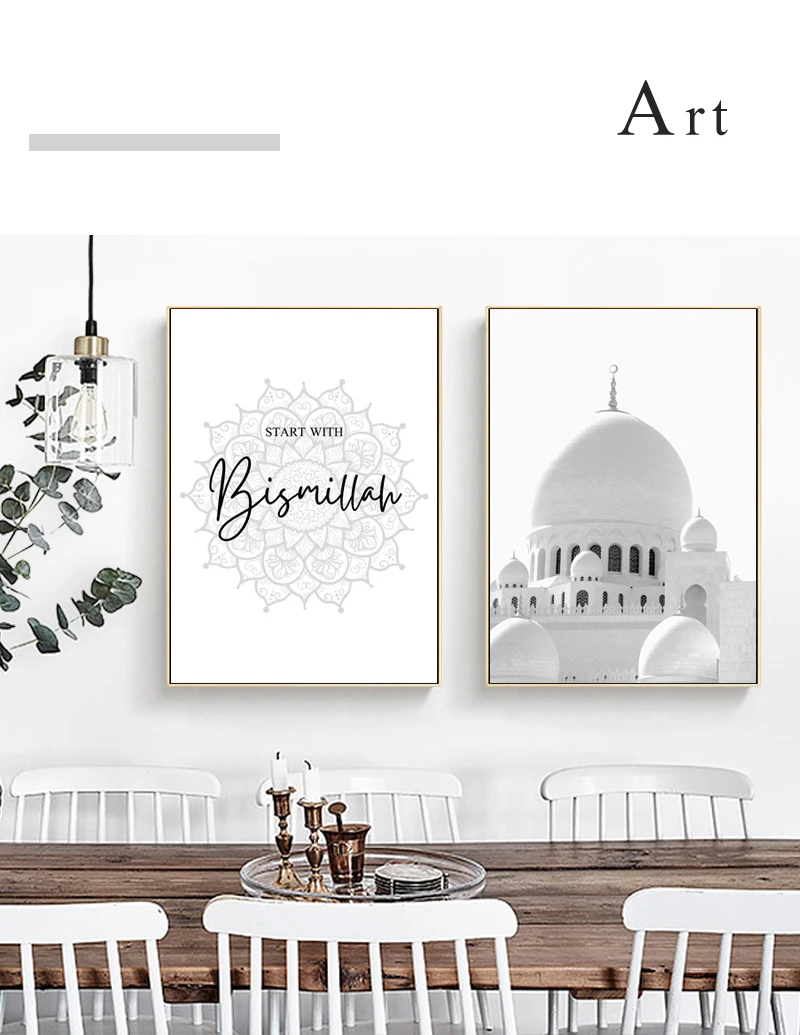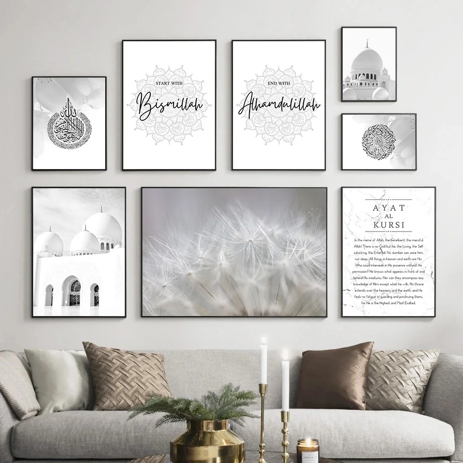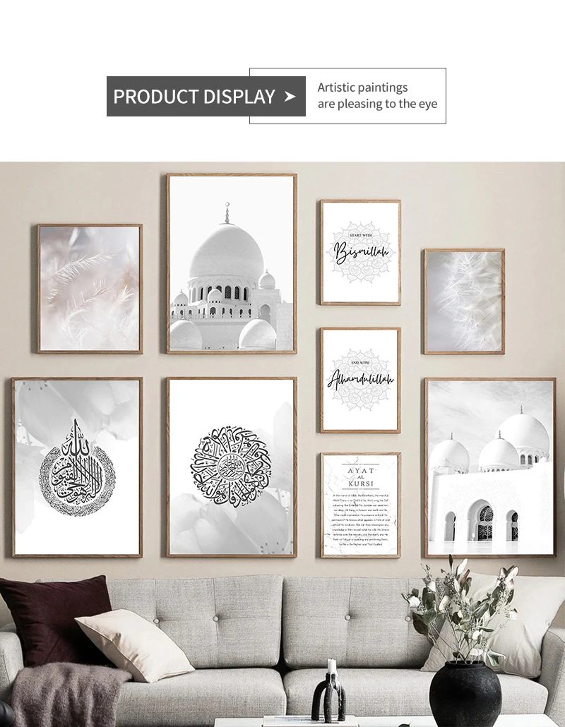 Исламский постер с белым зданием цветок Мусульманский Коран Цитата холст печать настенная живопись мечеть Марокко Картина Современный домашний декор