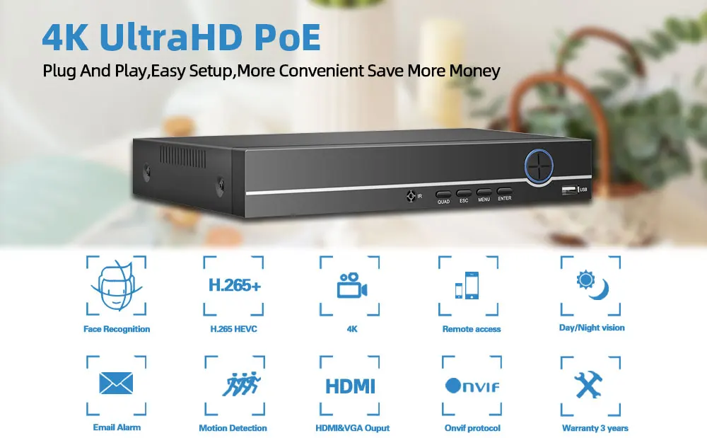 POE NVR More FeaturesFace Record,Face Detection,Face Playback