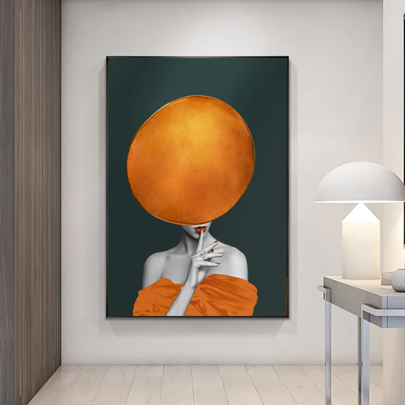 Современная оранжевая модная женская настенная Картина на холсте Минималистичная абстрактная шляпа постер для девушек картина для привлекательной леди домашний декор для комнаты