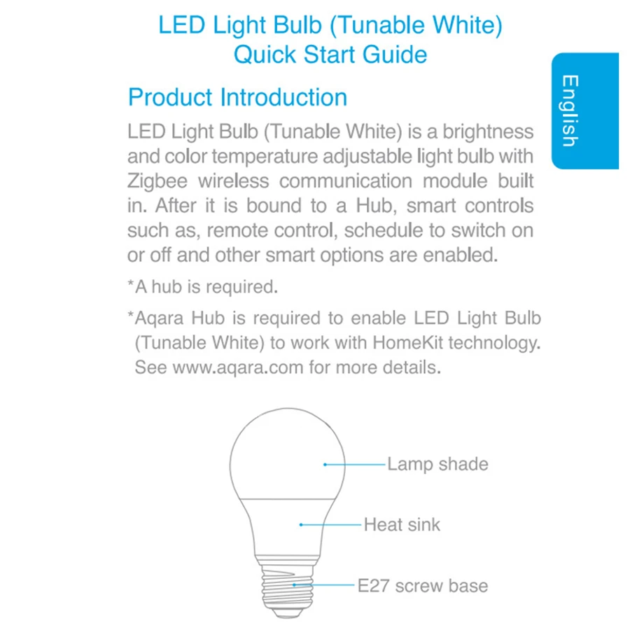 Умсветодиодный Светодиодная лампа Aqara Zigbee, 9 Вт, E27, 2700K-65...