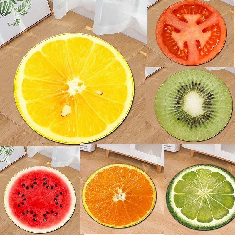 Нескользящий ковер с фруктами, круглый коврик для компьютерного кресла, коврик с арбузом, лимоном, для гостиной, для детской спальни, 4060 см80 см100 см120 см