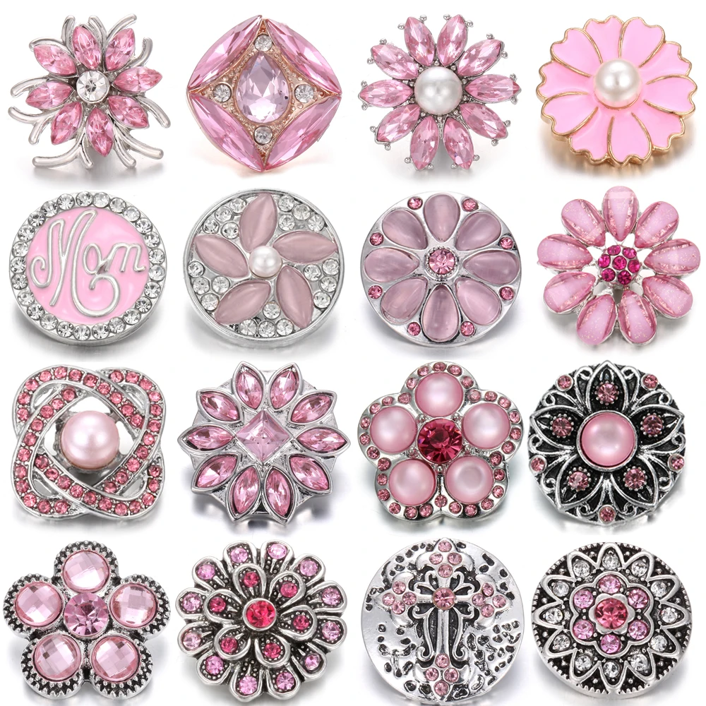 6 шт.лот, новые ювелирные изделия, 18 мм, кнопки, розовые кристаллы...