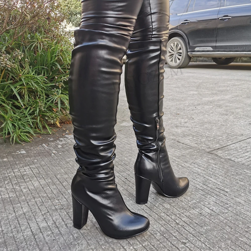 SEIIHEM/женские сапоги до колена на высоком каблуке; Черная Женская обувь ручной работы из искусственной кожи с боковой молнией; Donne Stivali; Большие размеры 42, 44, 50, 52