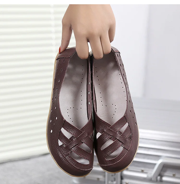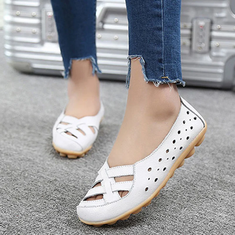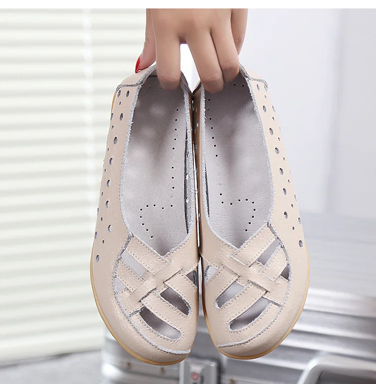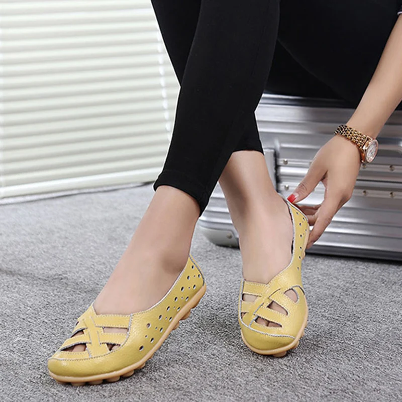 Женские кожаные кроссовки без шнуровки, прочные балетки для сада и ...