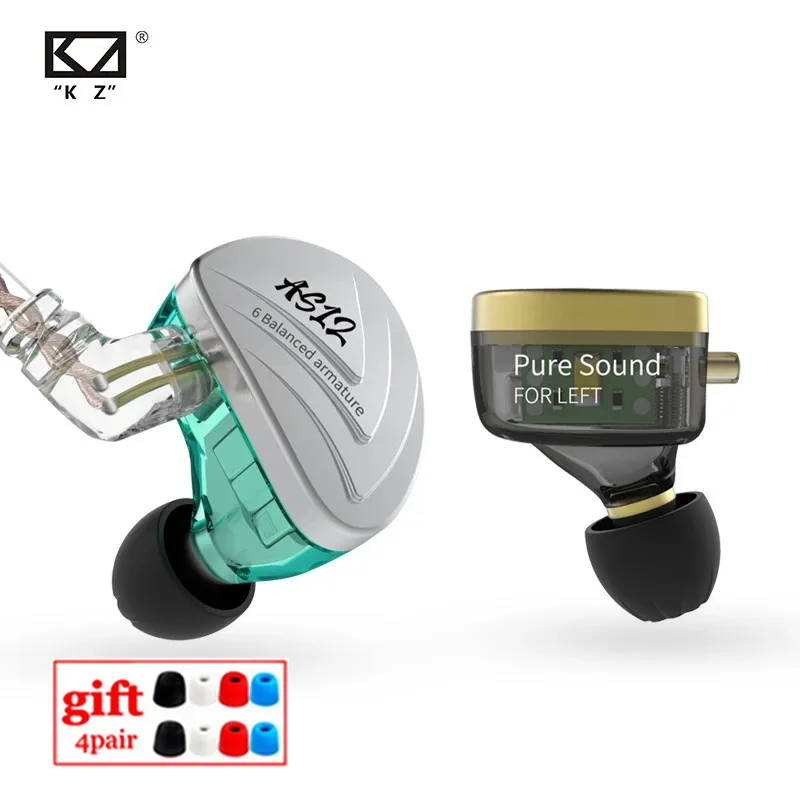 Наушники-вкладыши KZ AS12 6BA, Hi-Fi Спортивная гарнитура с монитором, наушники с шумоподавлением, сменный кабель, KZ AS16 AS10 AS06 C16