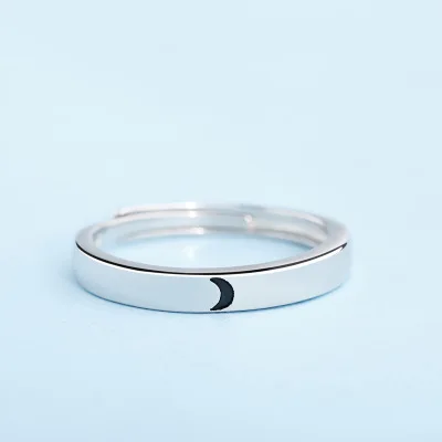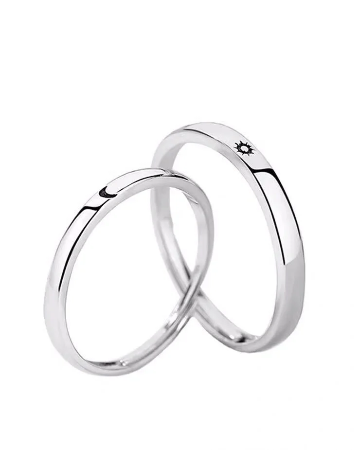Кольца серебряного цвета в простом стиле с изображением солнца Луны пары колец его и ее обещания для влюбленных Подарок на годовщину регулируемые кольца