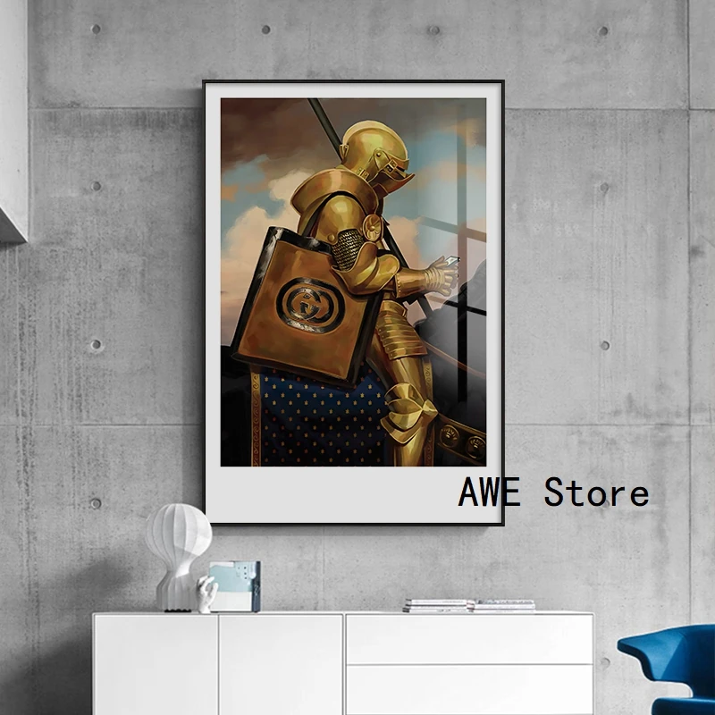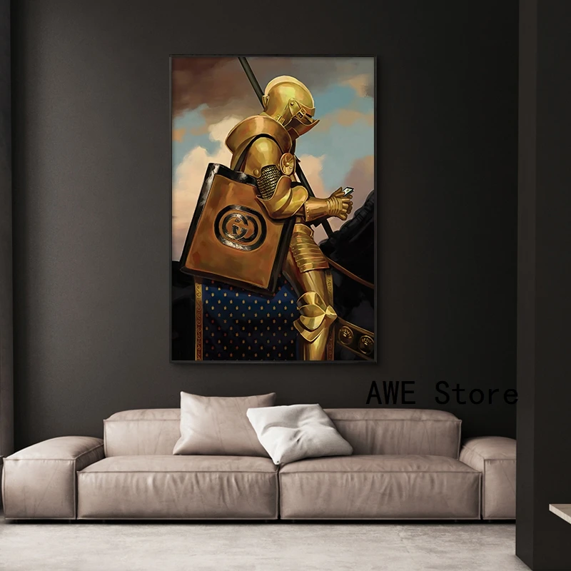 Украшение рыцарь в золоте, современная роскошная Картина на холсте, настенные картины для дома, дизайн гостиной, декор для комнаты
