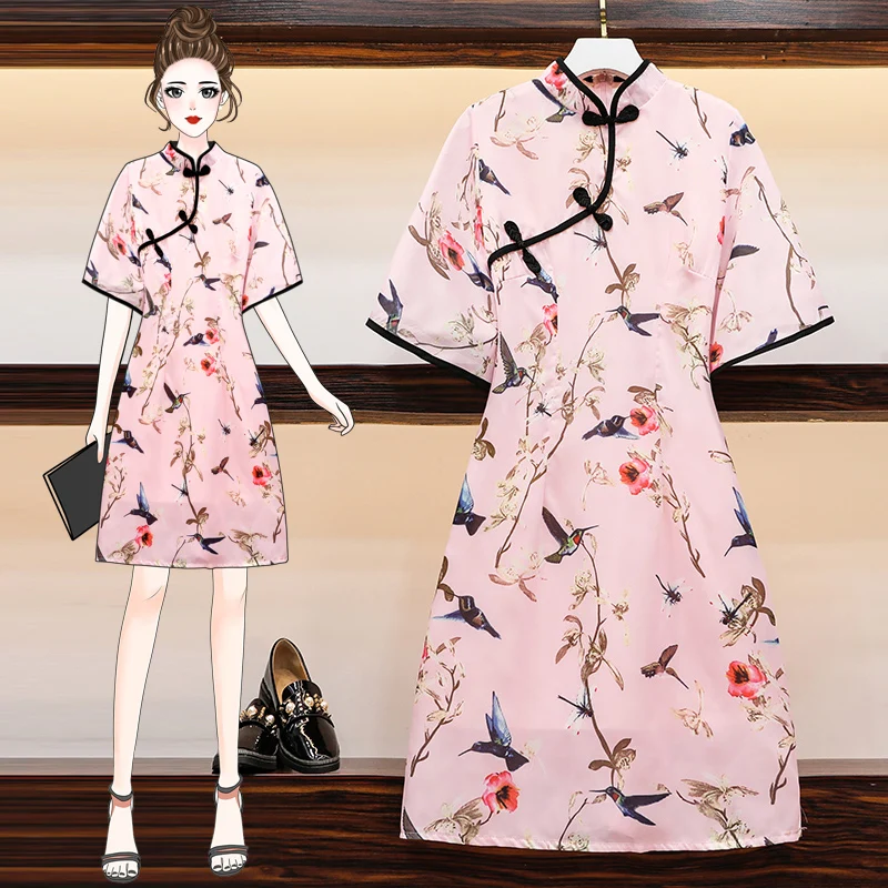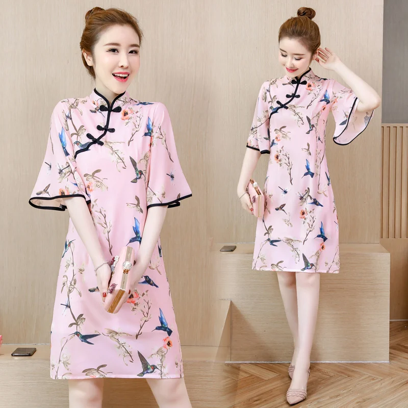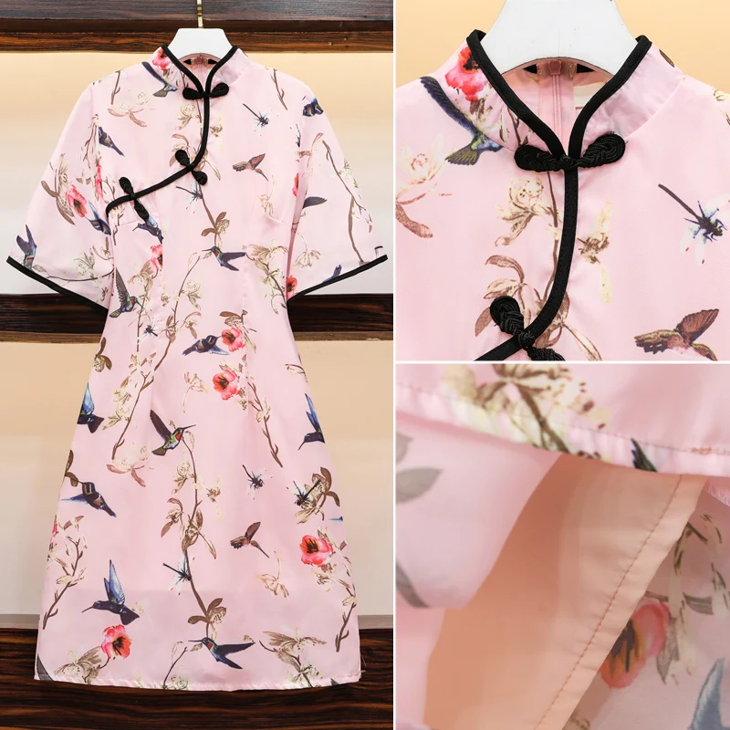 Мода 2021 плюс размер M-4XL женские Винтажные ботинки в китайском стиле розовый Qipao обувь для повседневной носки или вечеринки для женщин платье трапециевидной формы с короткими рукавами летние платья Чонсам для девочек