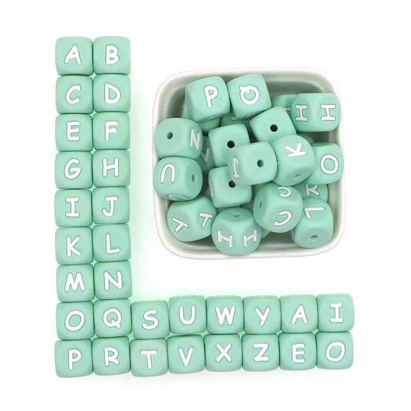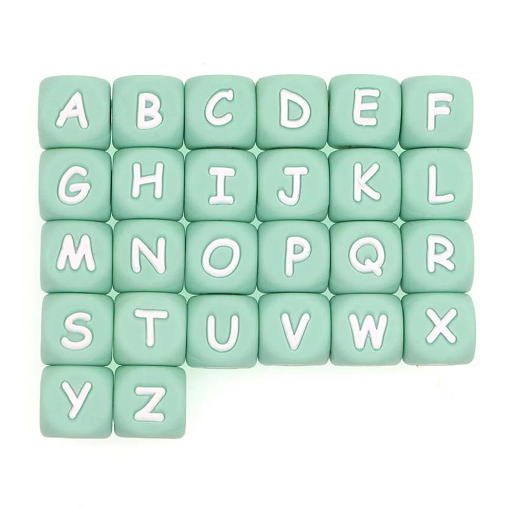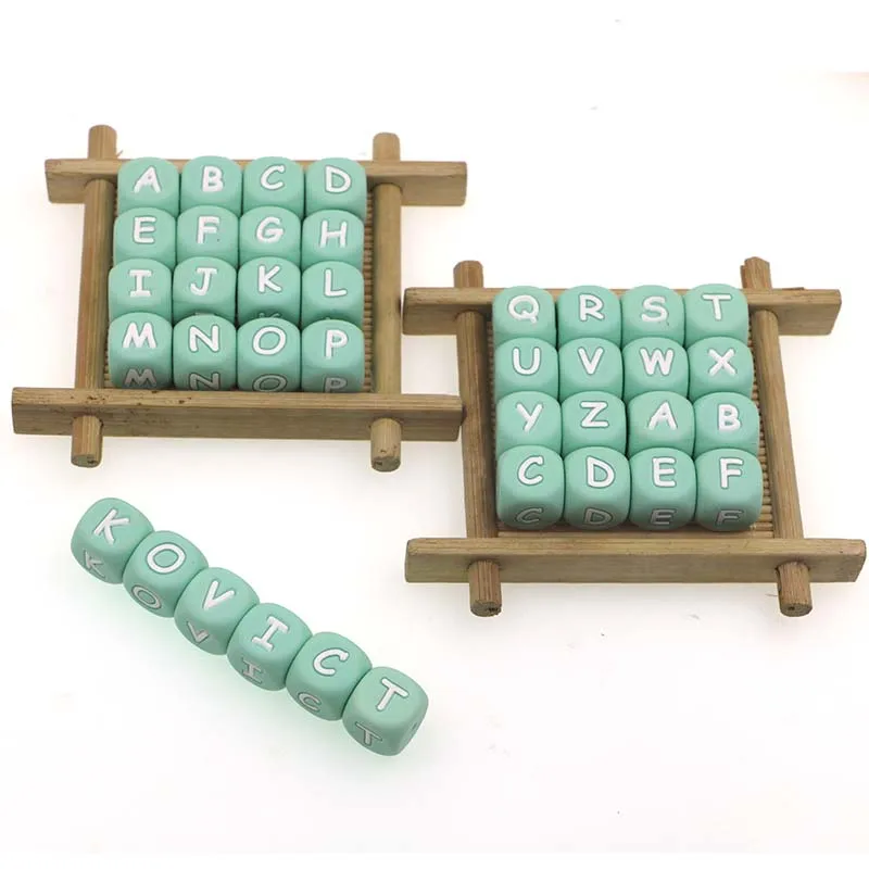 Kovict 10 шт. 12 мм Зеленые Силиконовые буквы бисер ребенок прорезывание зубов соски цепь Силиконовые Детские Прорезыватели BPA бесплатно жевательные игрушки для кормления