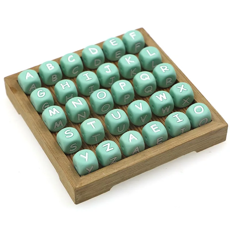 10 шт., силиконовые бусины с зелеными буквами, 12 мм