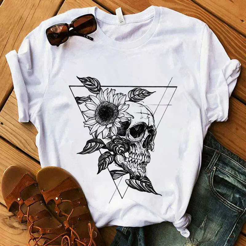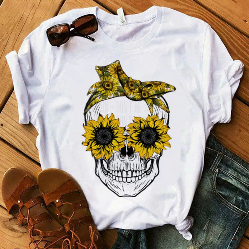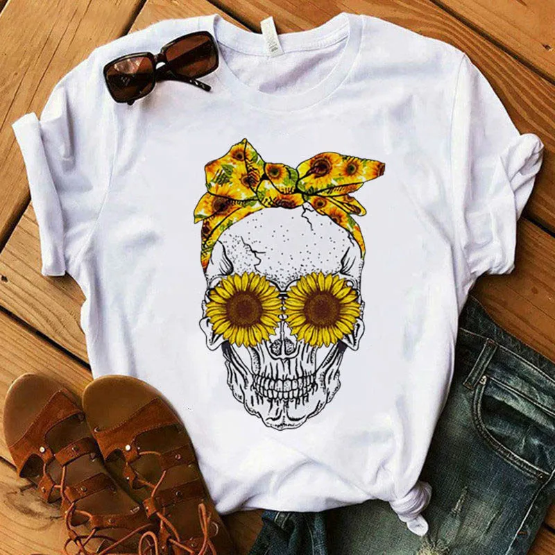 Череп весело печатных Женская футболка с о-образным вырезом Футболк...