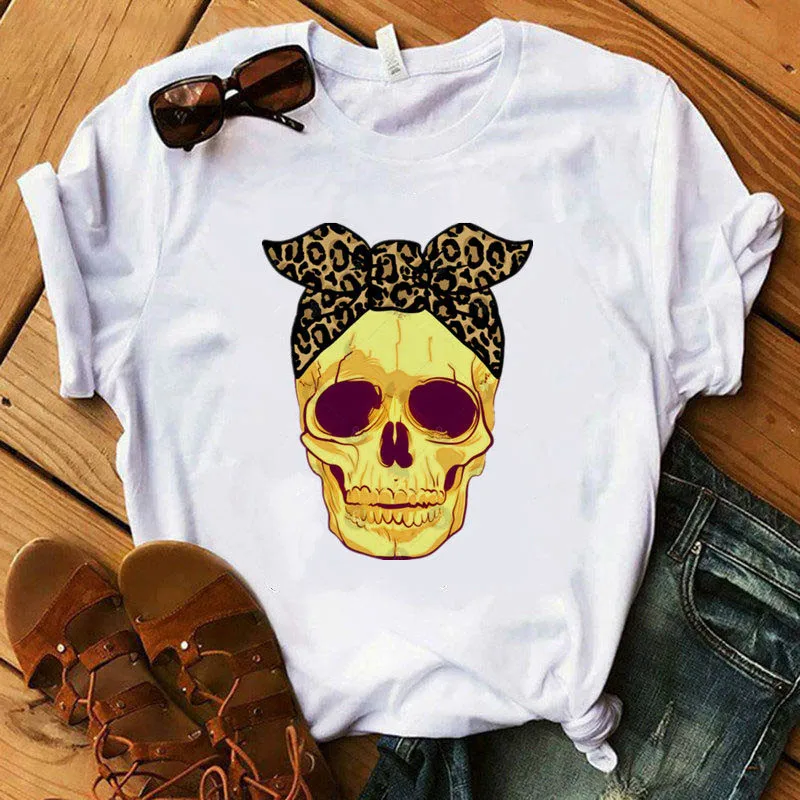 Летняя камуфляжная женская футболка с черепом, леопардовая бандана,...