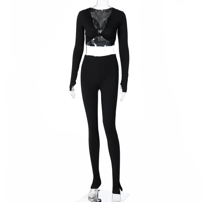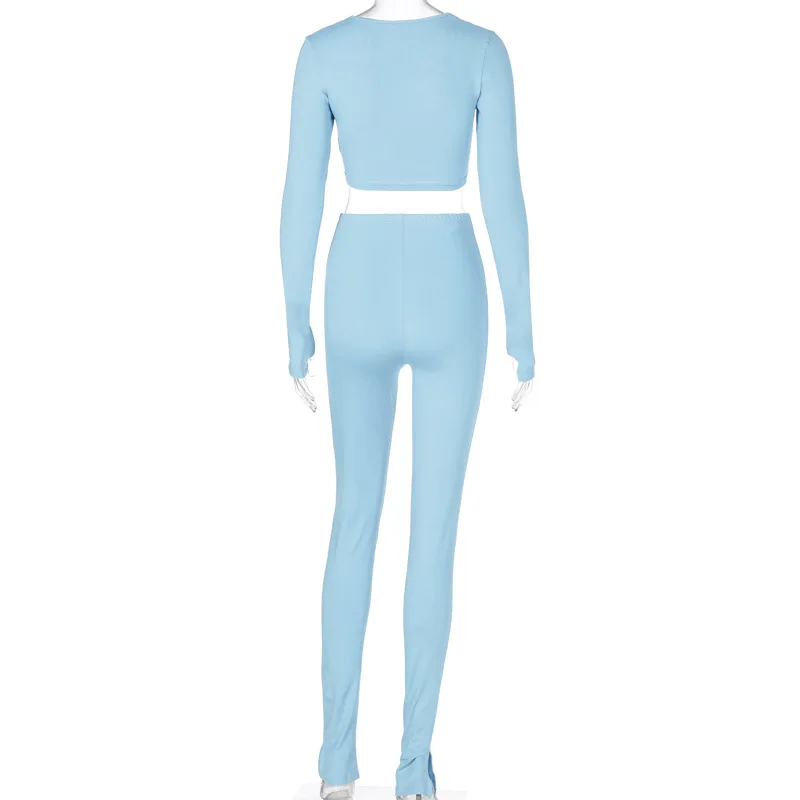 Спортивный костюм женский однотонный с V-образным вырезом, пикантны...