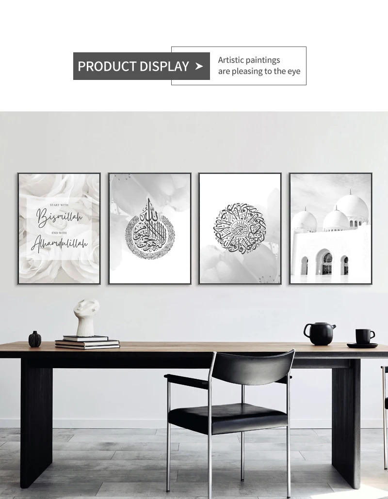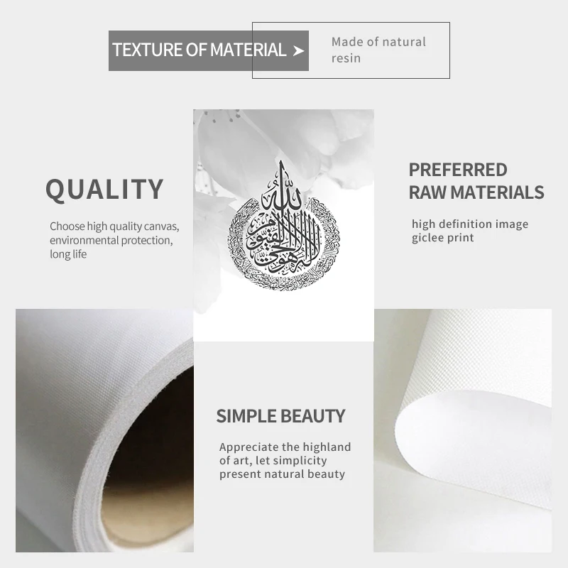 Белый цветок, исламский мусульманский Коран, цитата, живопись, Современная Картина на холсте, домашний декор, настенный художественный принт и постер для общежития, дизайн
