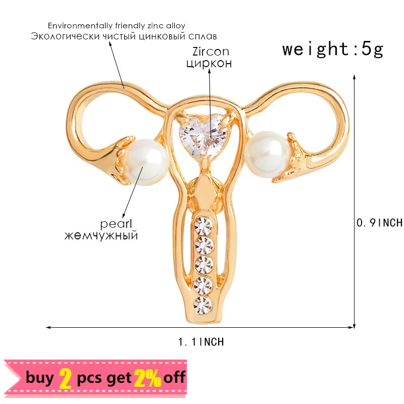 Женская металлическая брошь в виде матки с жемчугом и кристаллами, значок для здоровья для женщин, булавки для врачей, медсестер, медицинских работников, ювелирные изделия для студентов, подарочные аксессуары