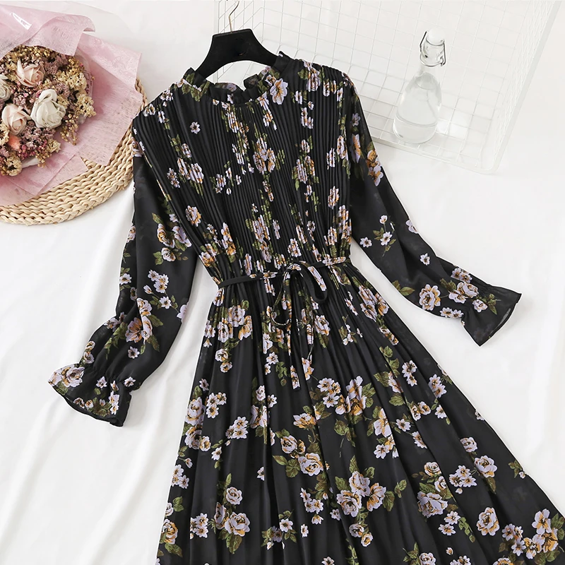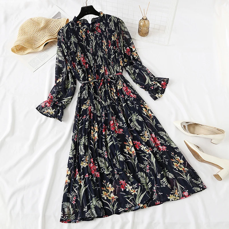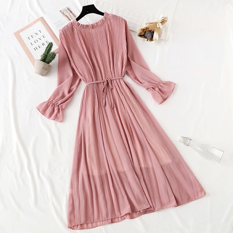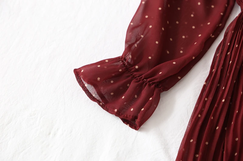 Элегантное платье в горошек для женщин платье женское Повседневное платье с расклешенными рукавами для офиса, из шифона, в горошек, детские платья с принтом ТРАПЕЦИЕВИДНОЕ винтажное платье Милая одежда Vestidos