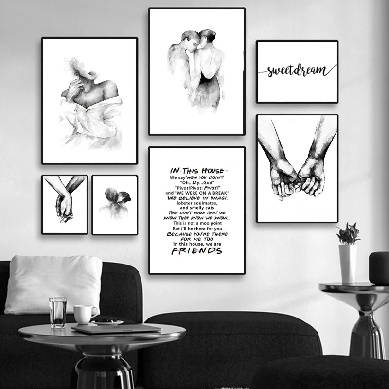 Черно-белая карта влюбленных, настенная Картина на холсте, скандинавский постер и принты, настенные картины Sweetdream для комнаты, Свадебный декор HD3141