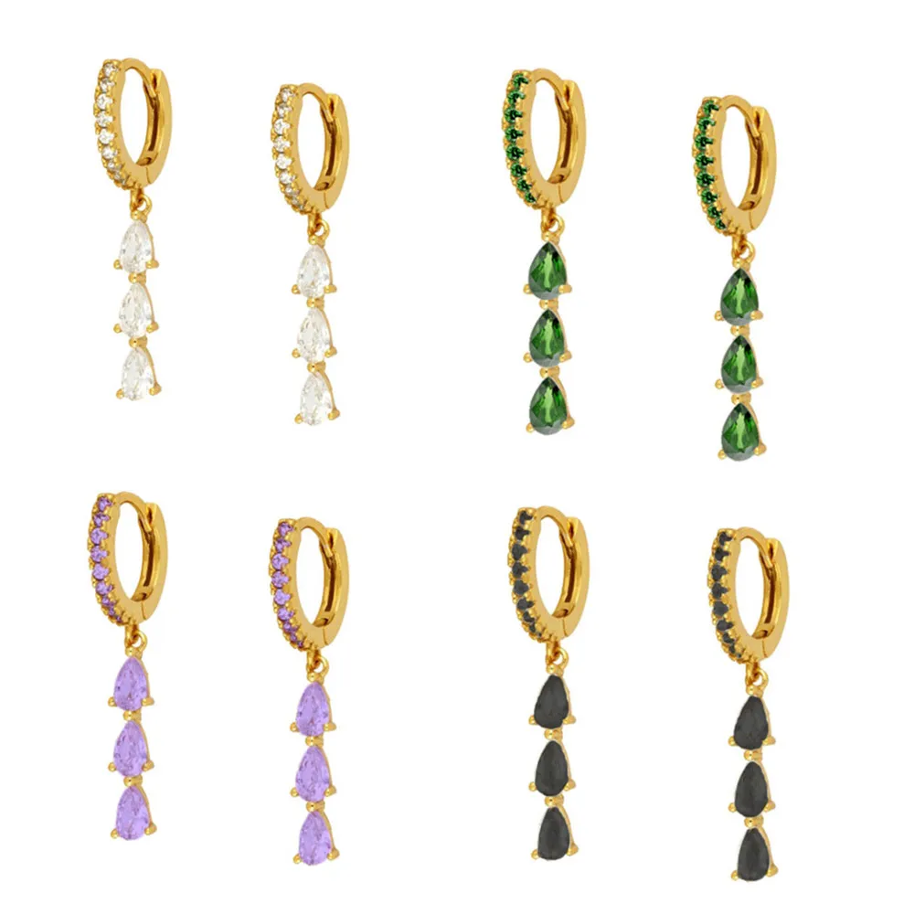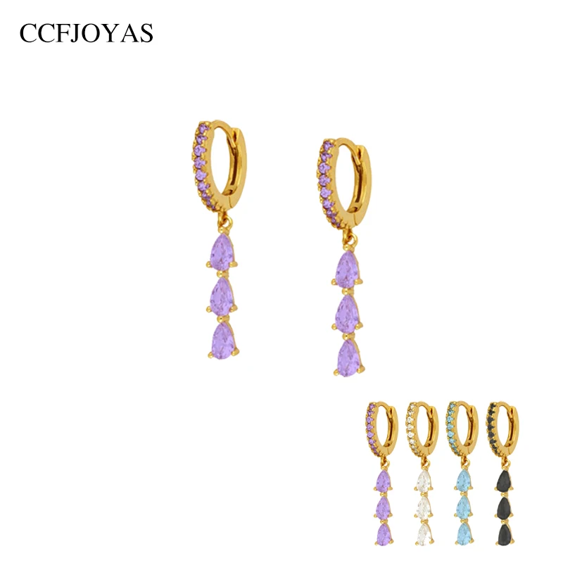 CCFJOYAS 925 стерлингового серебра три каплевидные Подвеска Серьги-кольца для женщин простой с CZ цирконием, серьги-кольца ювелирные изделия