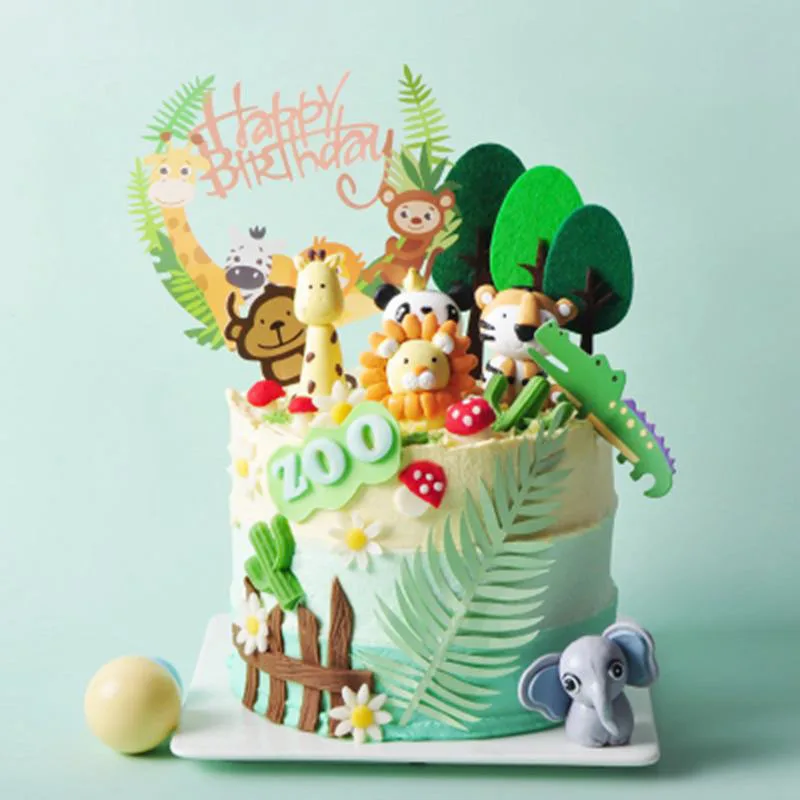 Украшение для торта с животными в зоопарке, декор для торта на день рождения, в джунглях, тематика на день рождения, в лесу, для вечеринки вечерние детского праздника
