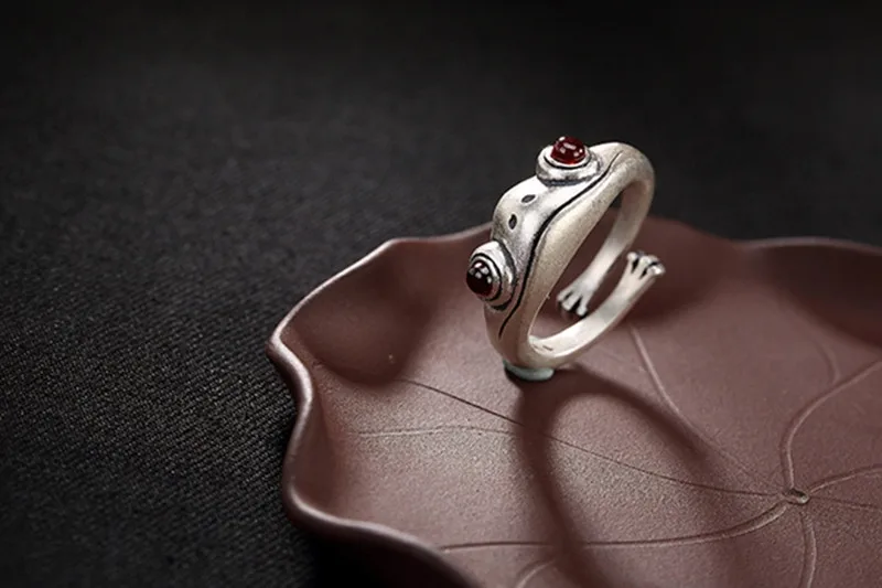 Винтажное открытое регулируемое кольцо в виде лягушки с красным гра...