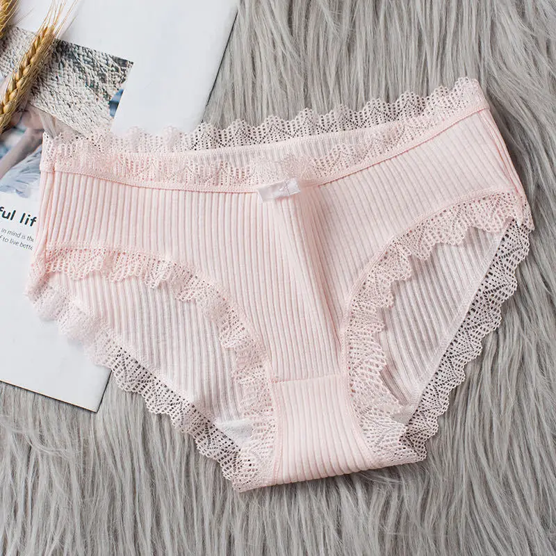 Женское нижнее белье средней талии, однотонные ребристые кружевные ...