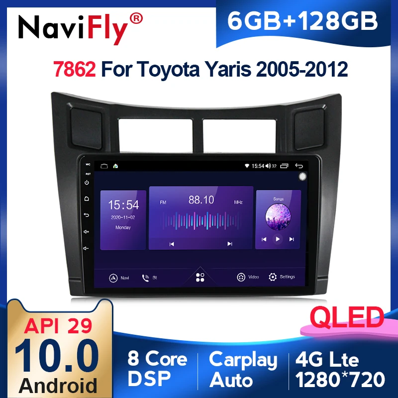 NaviFly 6 + 128G 1280*720QLED Carplay 4GLTE WIFI DSP Android для Toyota Yaris XP90 2005 - 2012 радио GPS автомобильный мультимедийный плеер