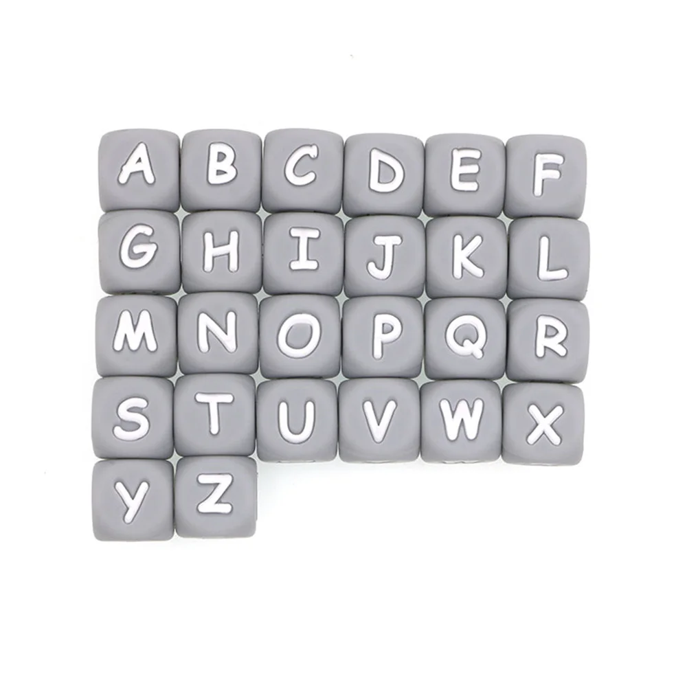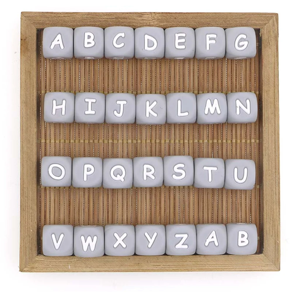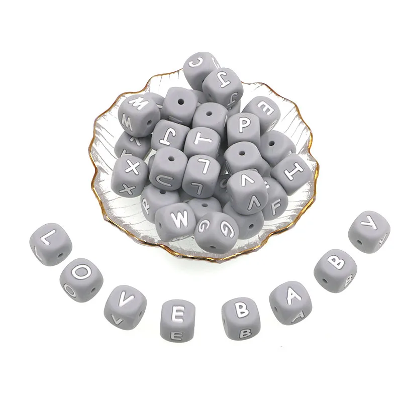 Kovict 10 шт. 12 мм серый силиконовый Алфавит буквы бисер ребенок прорезывание зубов соски цепь Силиконовые Детские Прорезыватели игрушки, не содержащие БИСФЕНОЛ
