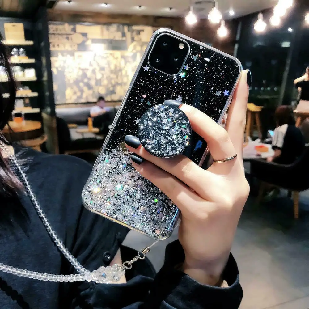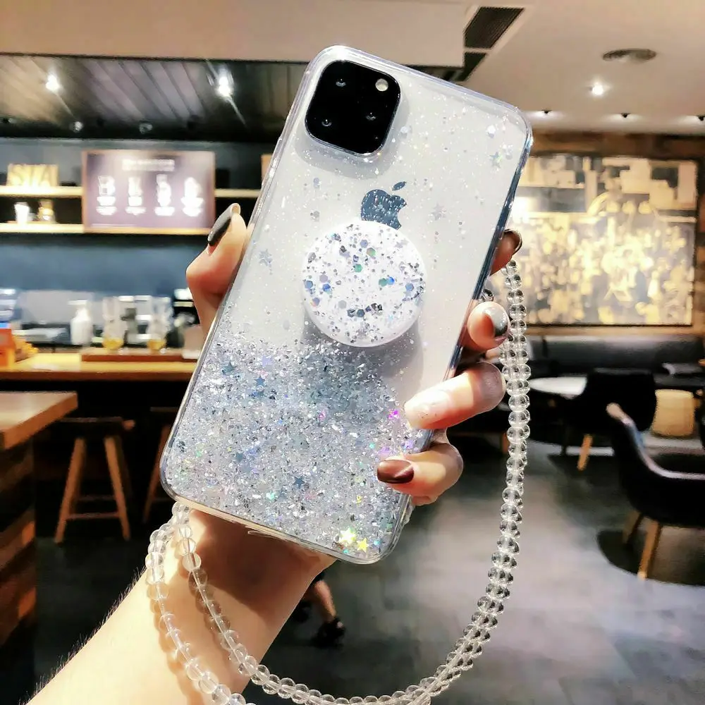 С сияющими блестками чехол для iPhone 12 Pro Max 12 Pro 11 XS XR X XS Max 6s 6 7 8 PlusSlim с поддерживающей подставкой из ТПУ и пластика телефонные чехлы разъем