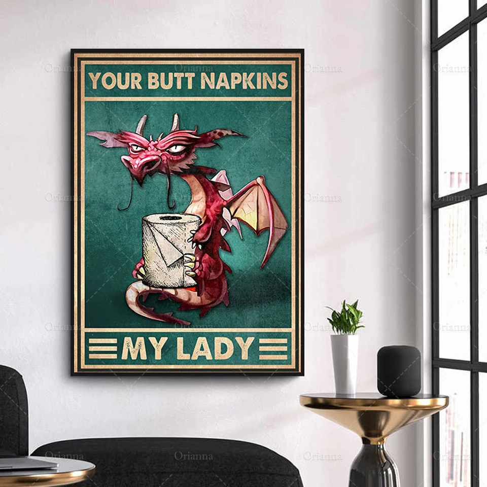 SubjectsYour Butt Napkins My Lady Poster, Funny Dragon Art Print