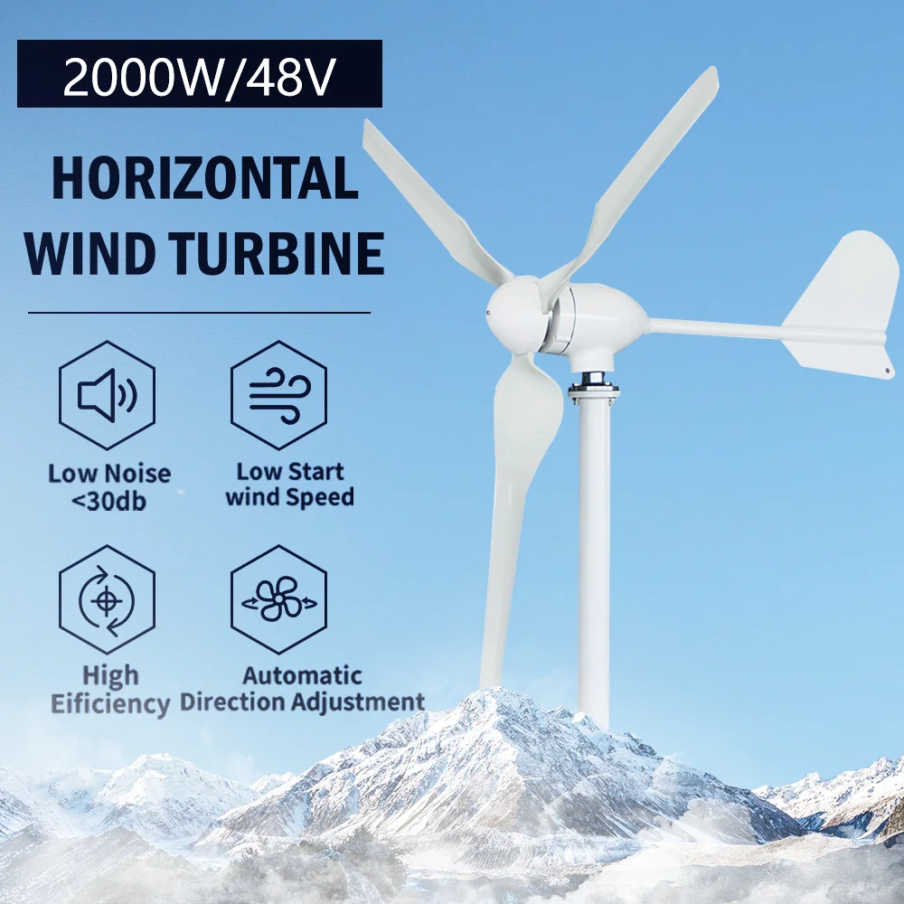 Китайский завод 2000 Вт горизонтальный ветрогенератор с 3 лопастями 12 В 24 в 48 в, генератор альтернативной энергии MPPT контроллер