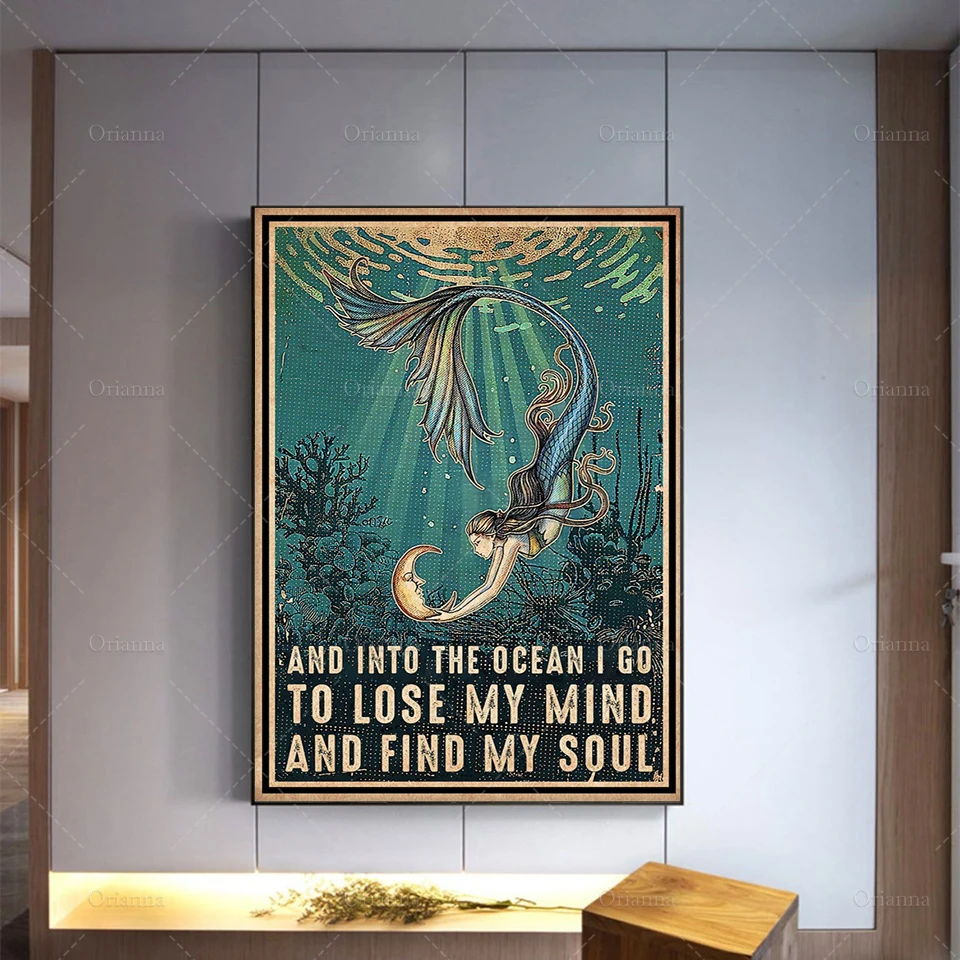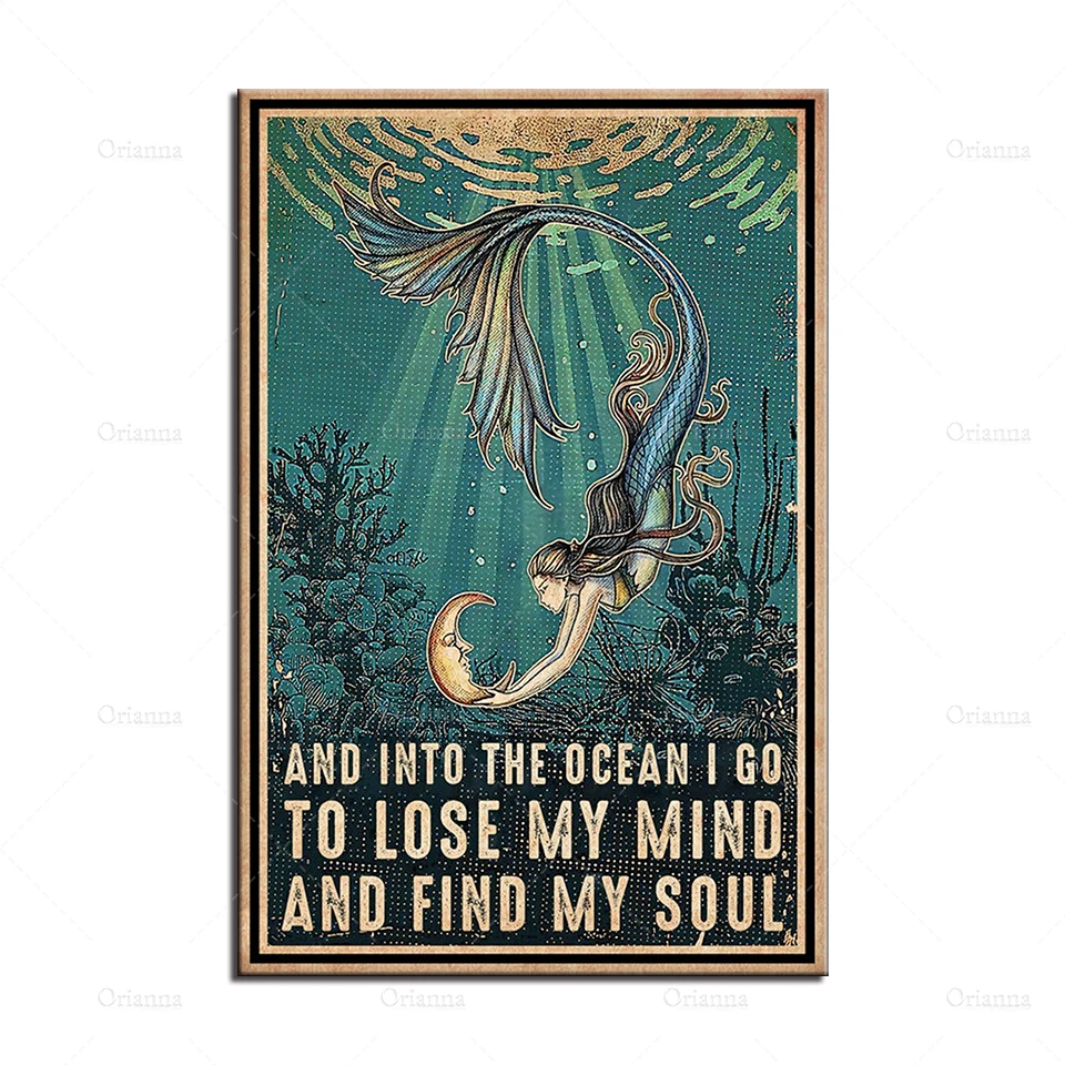 И в океане я иду, чтобы потерять свой разум и найти свою душу плакат, Русалка Художественная печать оставайтесь дикой луной ребенок настенное Искусство Лучшие подарки
