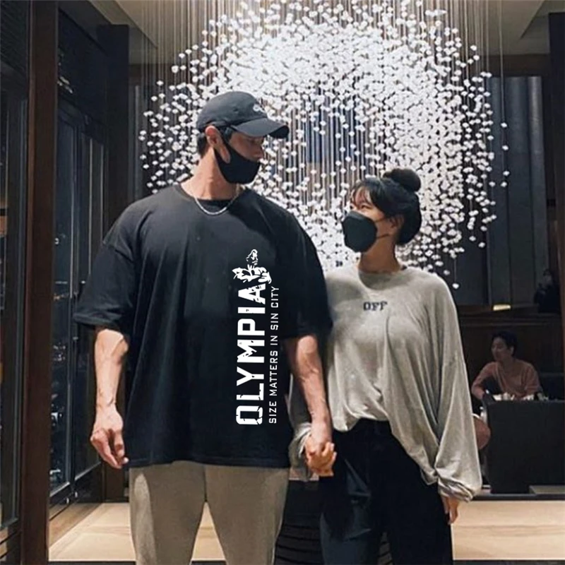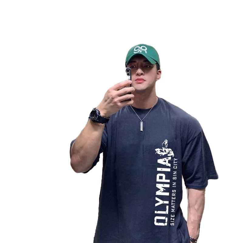 Мужская футболка большого размера, модная однотонная уличная одежда с коротким рукавом для спортзала, бодибилдинга, фитнеса, свободная спортивная одежда, M-3XL