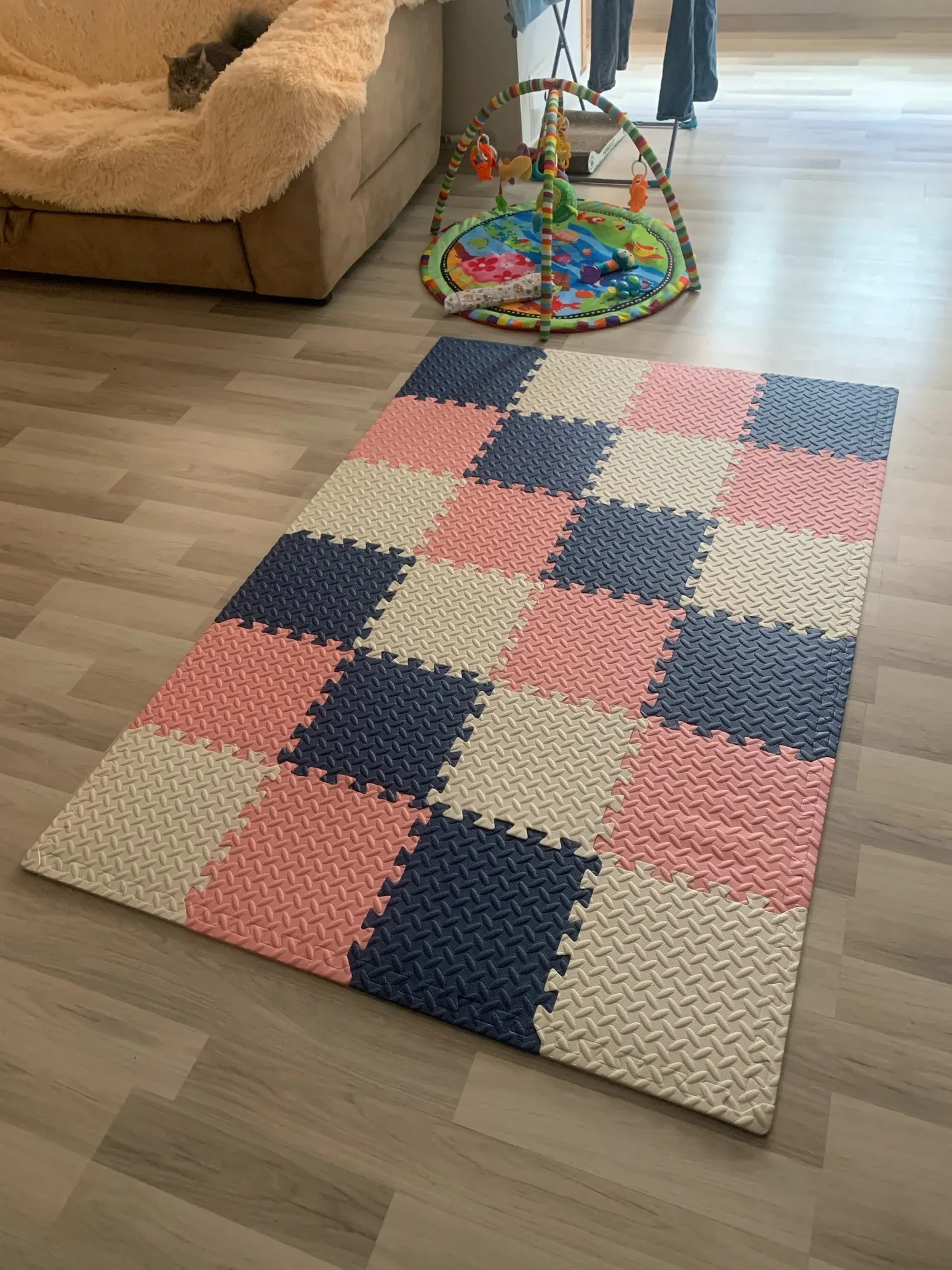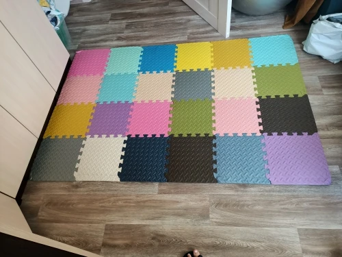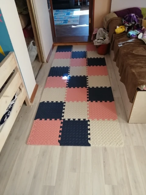 Коврик классный, заказала сразу 2 комплекта по 24 шт, края даже остались. Жаль, что на момент заказа был только такой цвет, но ждать не могла. Экспресс доставка задаржалась на 2 дня, а в целом всё отлично.