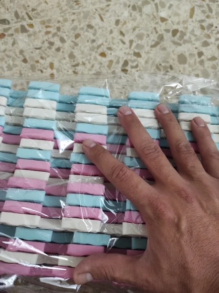 les couleurs sont ternes et pas toutes de la même couleur, le blanc est plutôt gros et le vert menthe une partie jolie et l'autre la couleur était passée comme vieillit.