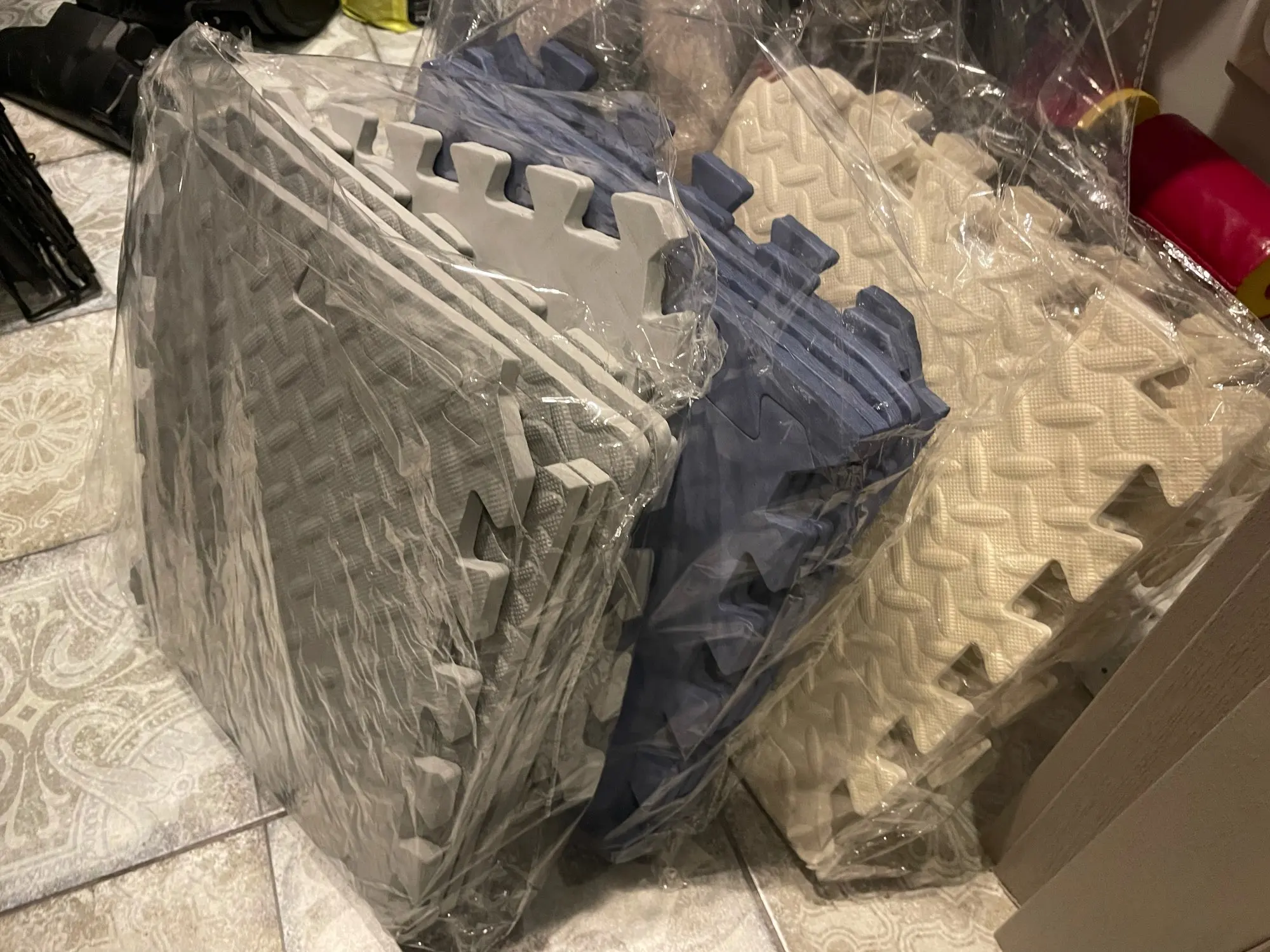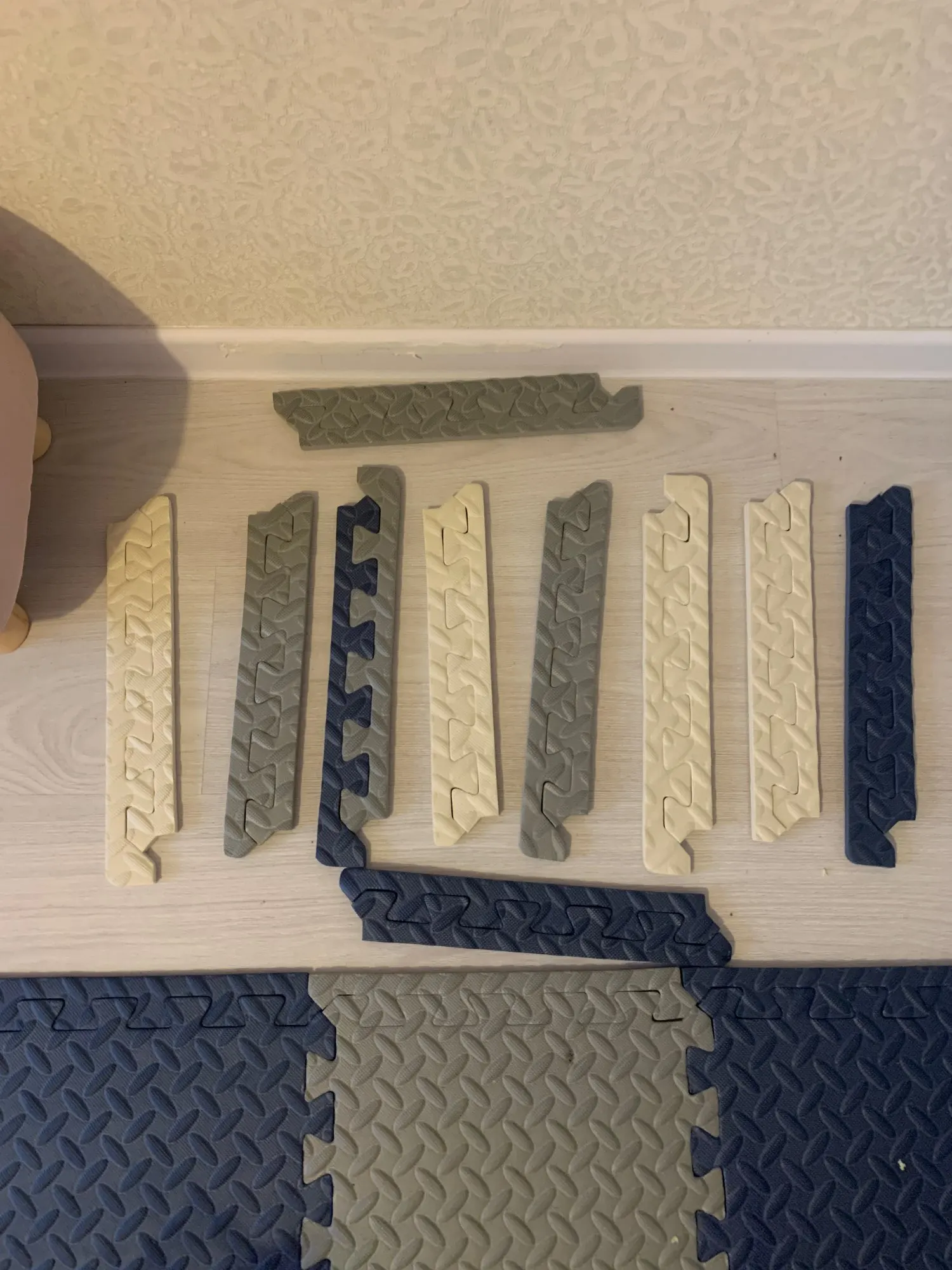отличный товар . доставка быстрая. качество супер. плотные. если кто хочет сравнить с детскими то те мягкие,а эти плотные хорошие.стыки ровные. заглушек хватило даже остались.пепеживала что не хватит.