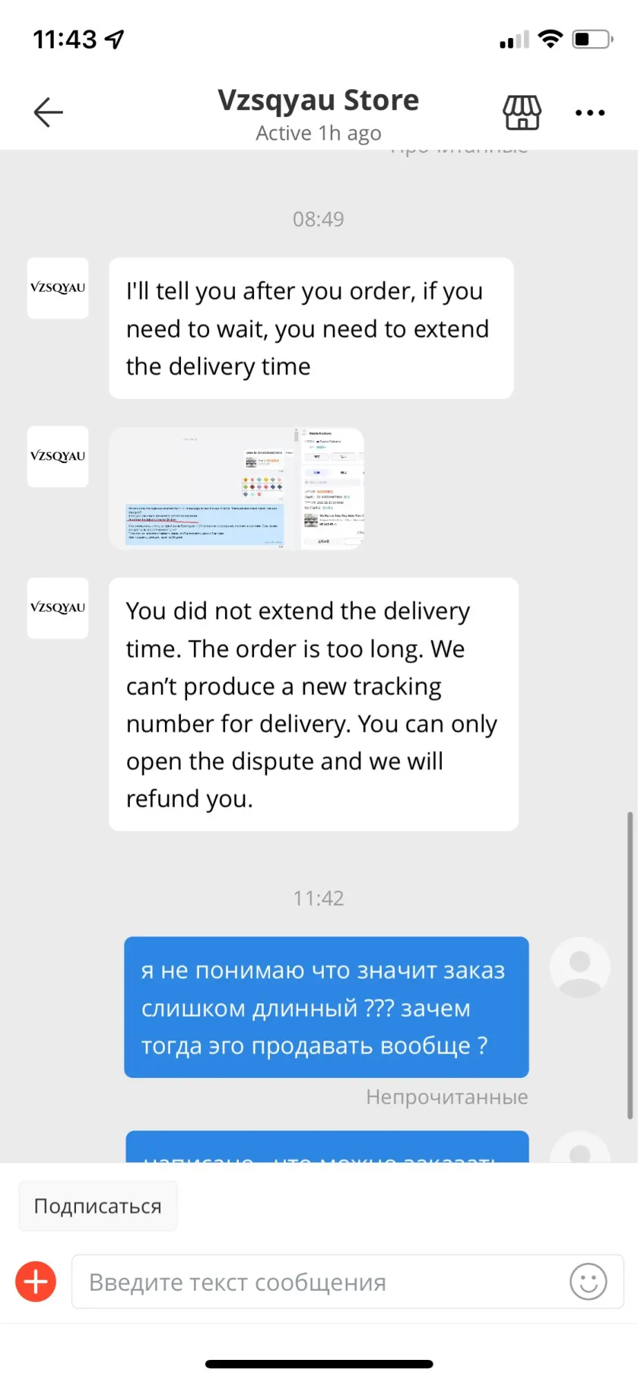 Продавец гандон. Месяц не высылал товар, мотивируя что нет такого цвета. Деньги вернул.