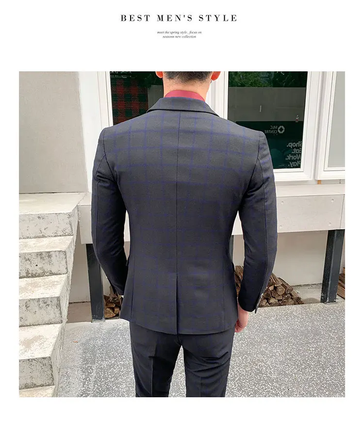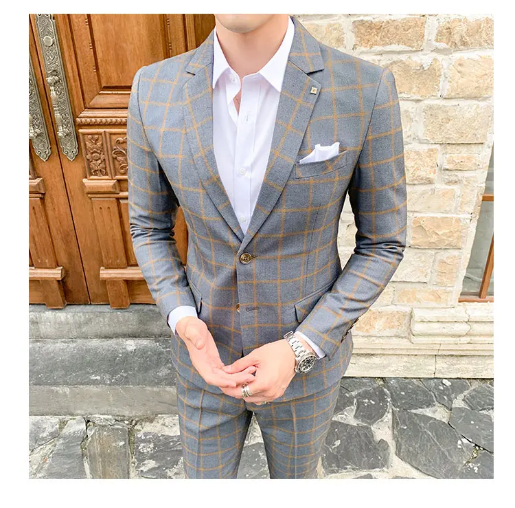Мужской облегающий костюм из 2 предметов, деловой облегающий смокинг, костюм для выпускного вечера, мужские свадебные костюмы в клетку для жениха, высококачественное мужское платье, мужские костюмы