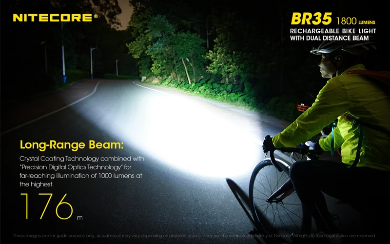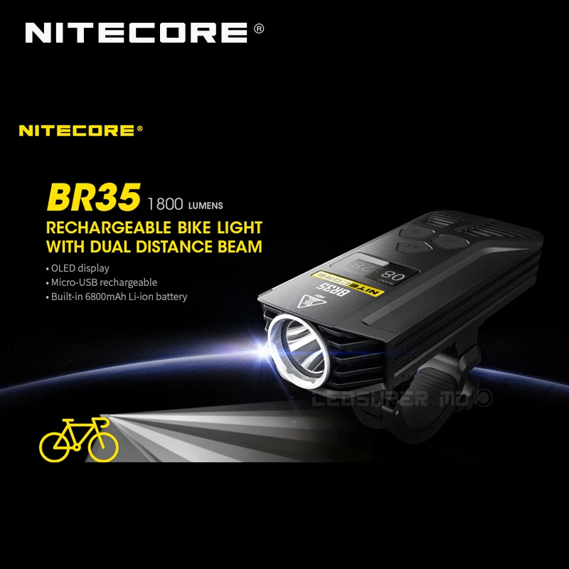 Высокопроизводительное освещение для езды на велосипедеВелосипедный светильник NITECORE BR35 использует инновационный двойной дальний луч, похожий на автомобильный головной светильник s, чтобы одновременно светильник на расстоянии как близко, так и далеко для устранения темных зон и обеспечения безопасности. Оснащенный двумя мощными светодиодами CREE XM-L2 U2, BR35 производит обжигающий 1800 люмен максимальный выход с 182 ярдами броска, чтобы обеспечить пользователям достаточно света для нескольких сред. Простой пользовательский интерфейс с тремя кнопками позволяет пользователям легко переключать режимы освещения (Дальний свет, дальний свет, дальний луч) с помощью режима (м) переключайте и настраивайте уровни яркости с помощью переключателей plus (+) и minus (-) во время перехода.Легко читаемый oled-экран, расположенный в верхней части велосипедного светильника, отображает текущий режим освещения, уровень яркости и оставшееся время работы, позволяя гонщикам быстро проверять уровни во время движения. Встроенный литий-ионный аккумулятор емкостью 6800 мАч обеспечивает пользователям до семнадцати часов работы, идеально подходит для длительной ночной езды. Когда пришло время зарядить аккумулятор, пользователи могут легко зарядиться в любом месте, подключив кабель для зарядки micro USB к любому доступному источнику питания USB, это отличный велосипедный фонарь для повседневного использования или путешествий.
