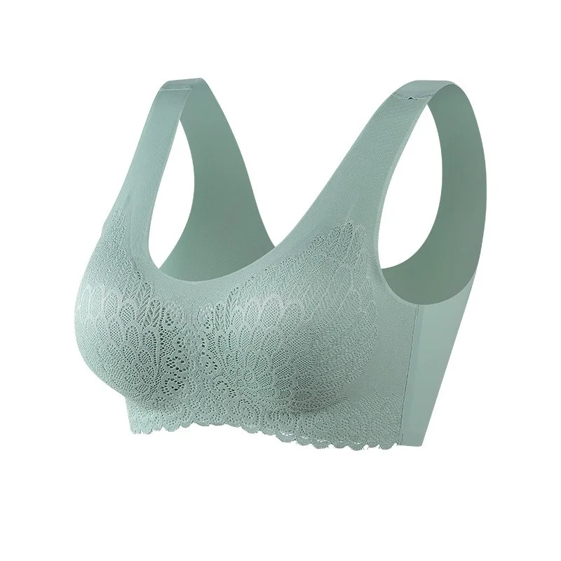 Бюстгальтер женский бесшовный кружевной, пикантное нижнее белье, бюстгальтер без стальных косточек, удобный амортизирующий с комбинированным кружевом для сна, большие размеры