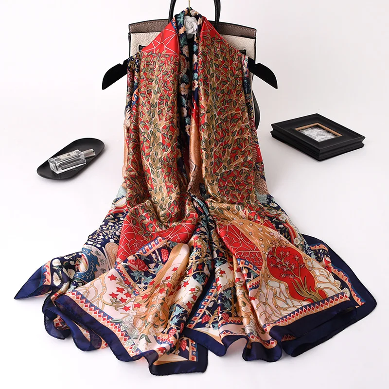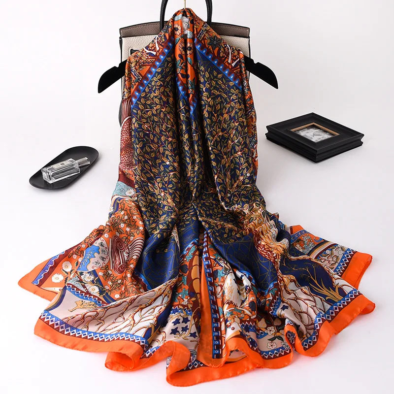2021 женский шелковый шарф 180*90 см женский элегантный пляжный мяг...