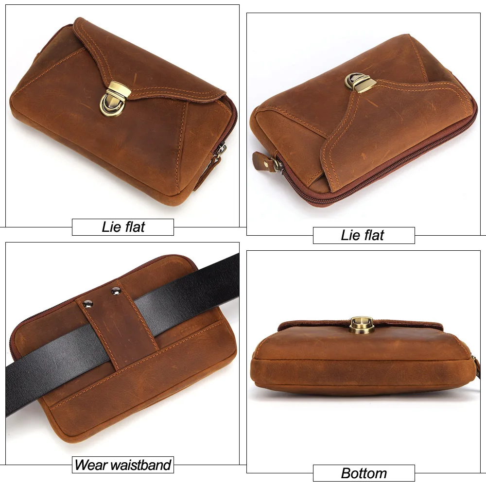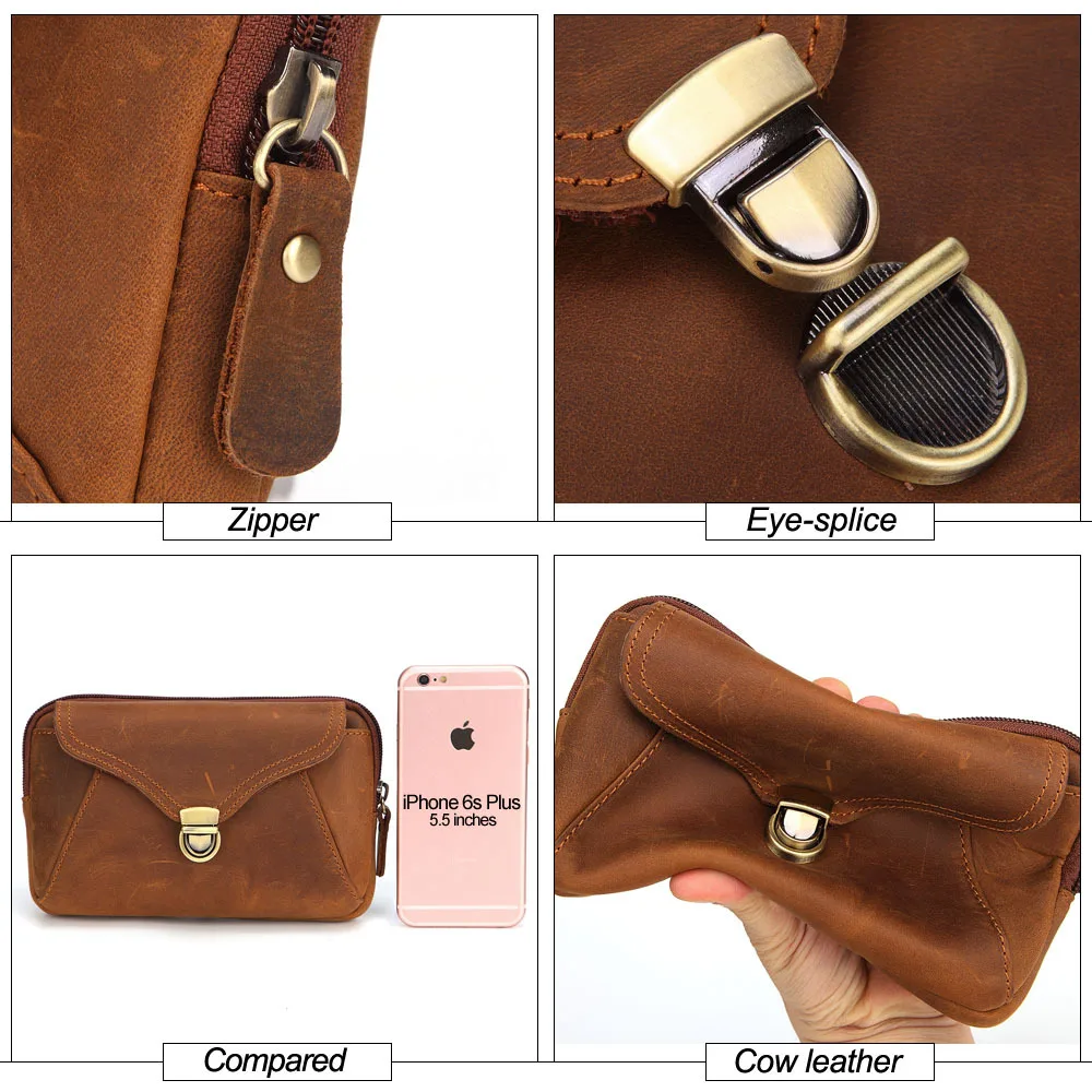 Мужская поясная сумка из натуральной кожи crazy horse, двойная сумка для телефона с чехлом, с пряжкой, карманы для ремня