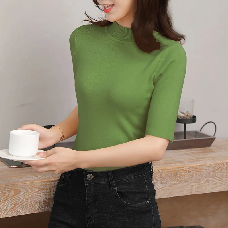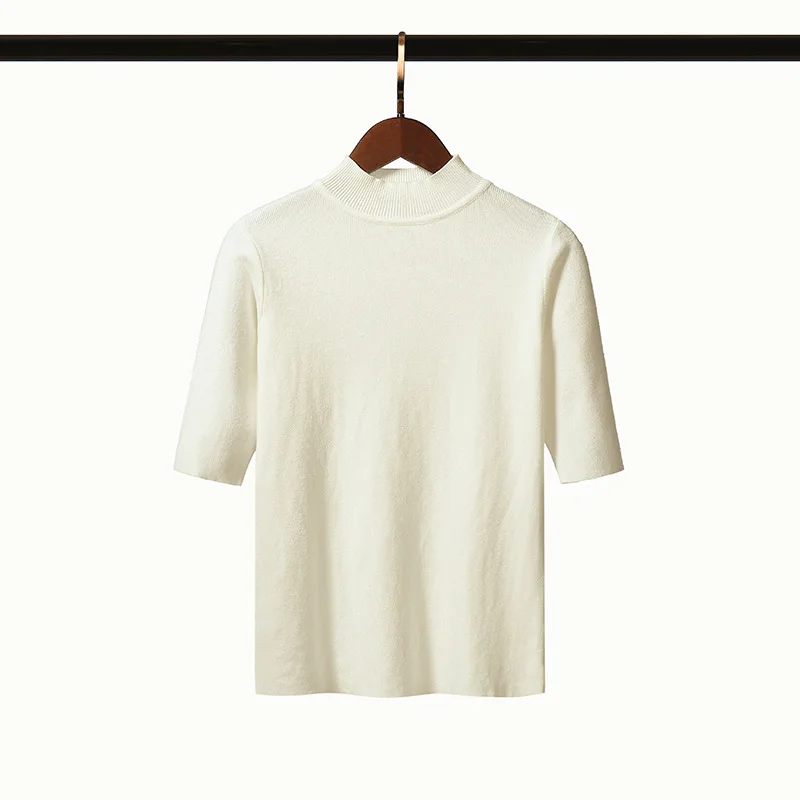 Женская трикотажная футболка HLBCBG, повседневная облегающая Однотонная футболка с круглым вырезом и коротким рукавом, на пуговицах, на весну-лето