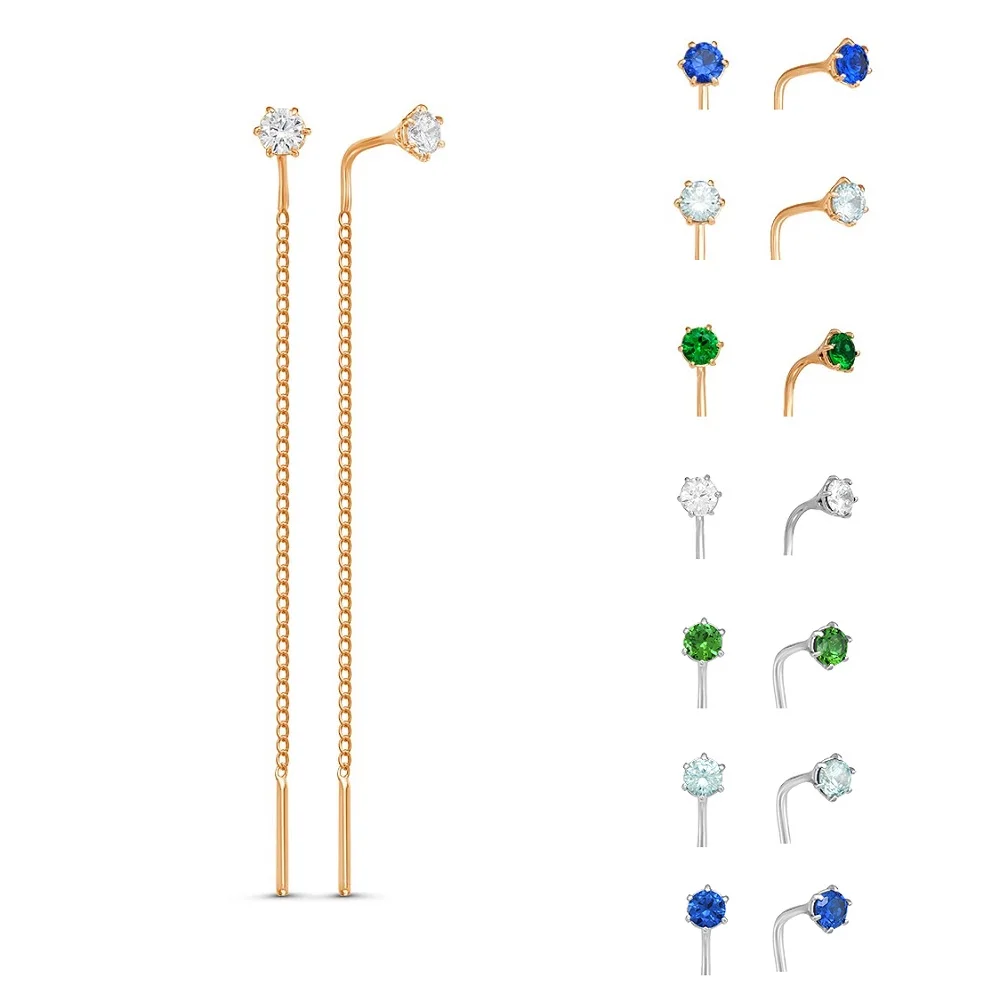 Вставка: Бесцветная - фианит, зелёная и синяя - искусственная шпинель