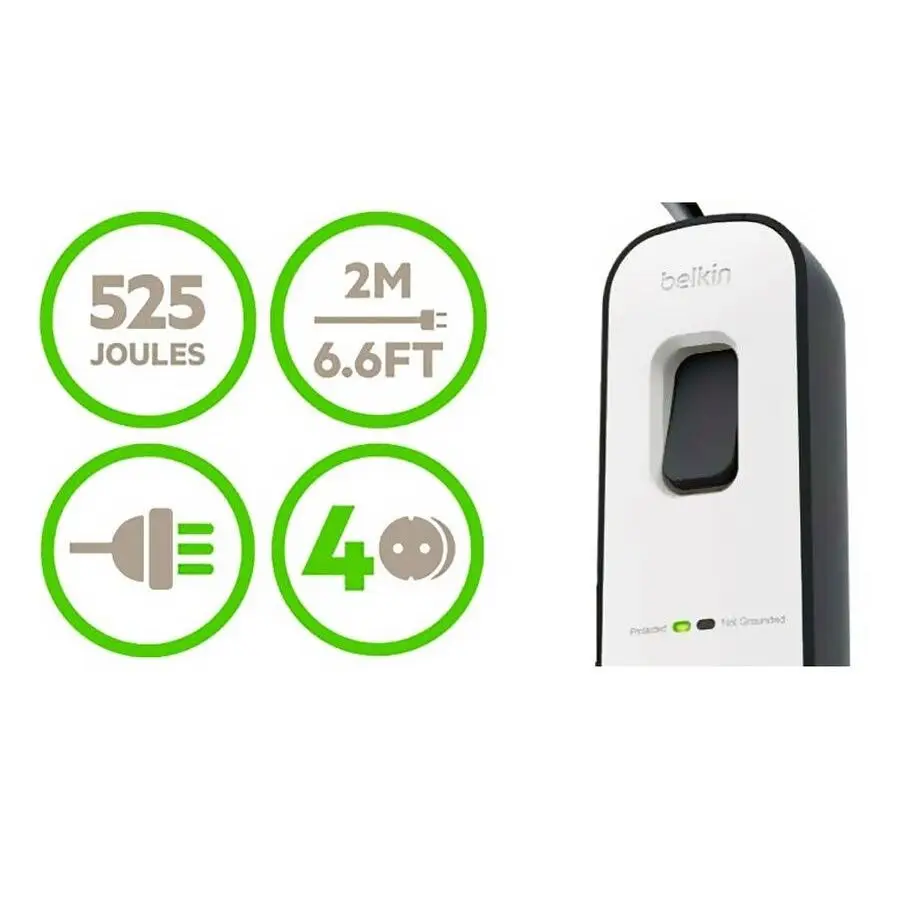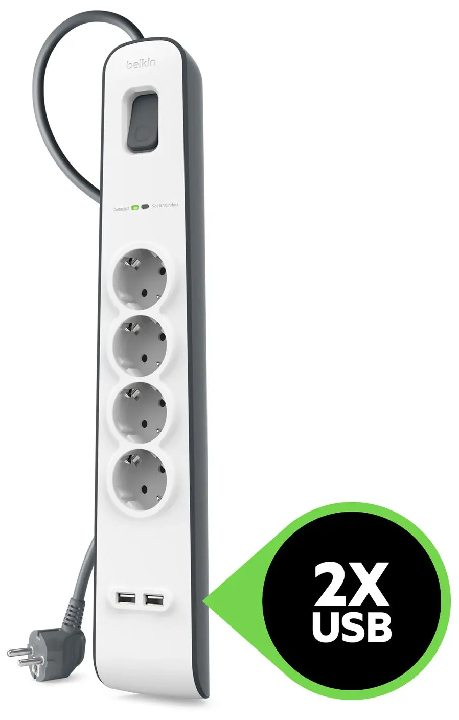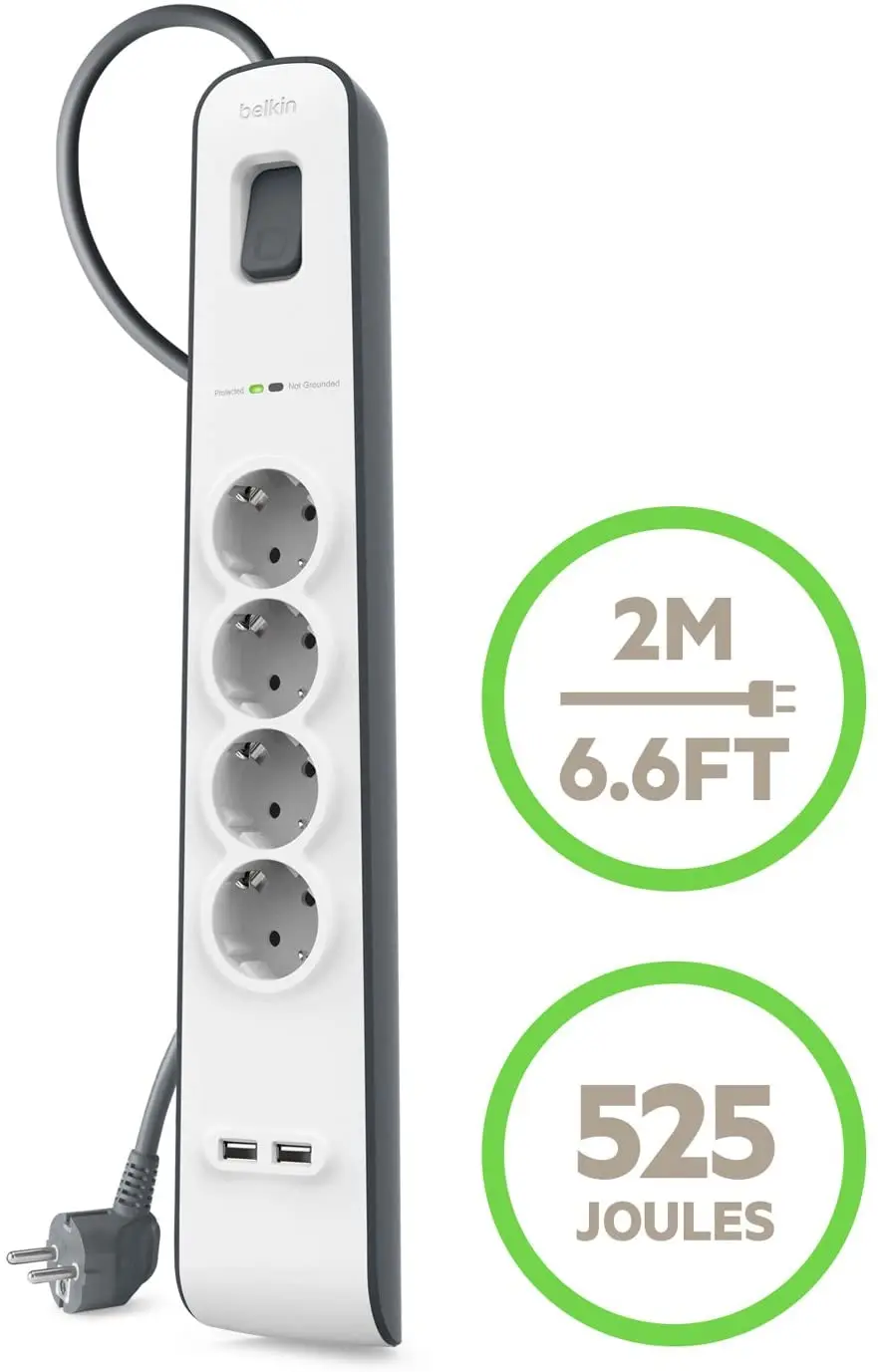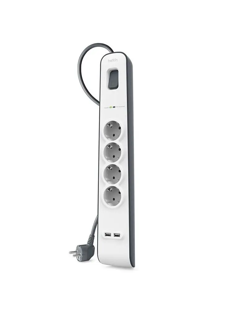 Belkin белая розетка с 4 входами, 2 шт., 2,4 USB-вход, кнопка включения и выключения питания, 2 м