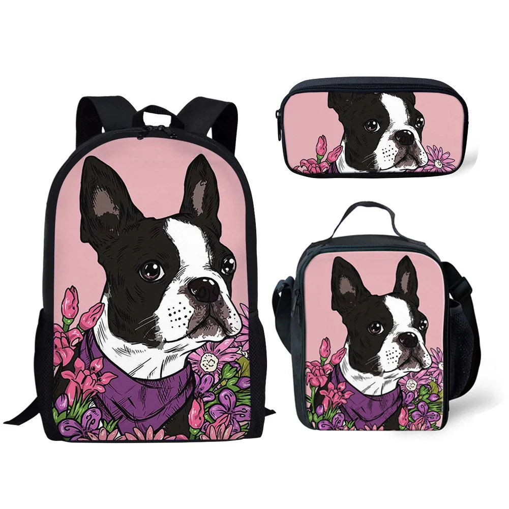 3 шт.компл. ранцы для начальной школы для детей милые школьные портфели с принтом французского бульдога для девочек
