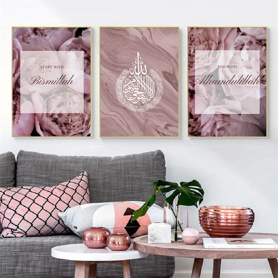 Мусульманская Настенная роспись на холсте Аллах, плакат с лепесткам...
