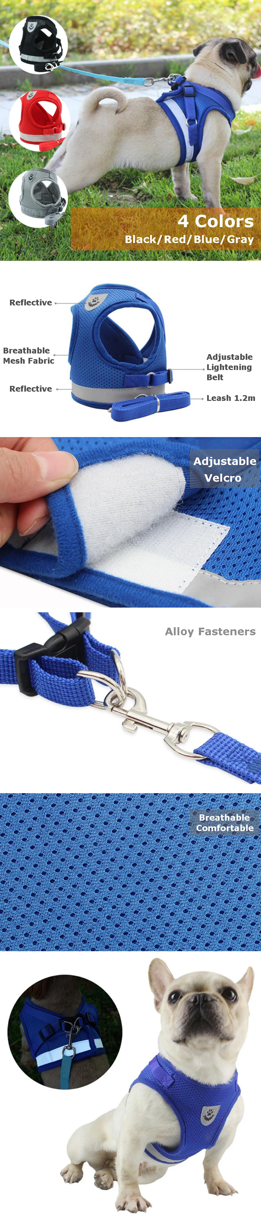 Дышащая Светоотражающая шлейка и поводок для собак, Нейлоновый Регулируемый жилет для кошек, для котят, щенков, французских собак, для бульдога чихуахуа