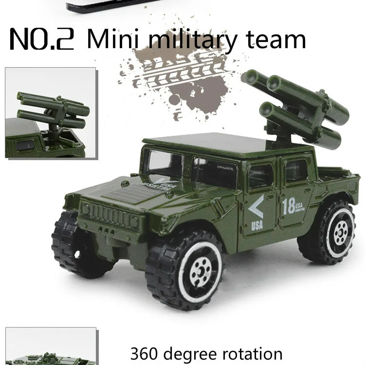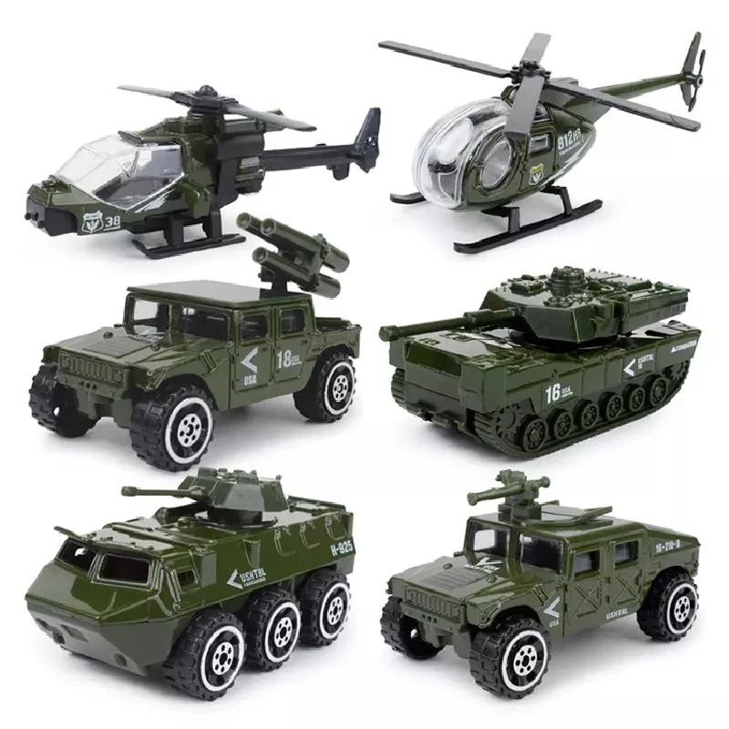 [Семейство товаров]: военные, противопожарные [Упаковка товара]:6 комплектов в одной коробке. [Описание товара]: около 7*4*3,5 см Описание товара: каждый набор из 6. Материал: Сплав/пластик. [Функция продукта]: бесшумный свет, таксирование Использование продукта: сбор, просмотр, празднование, подарки, украшение, Высококачественные игрушки
