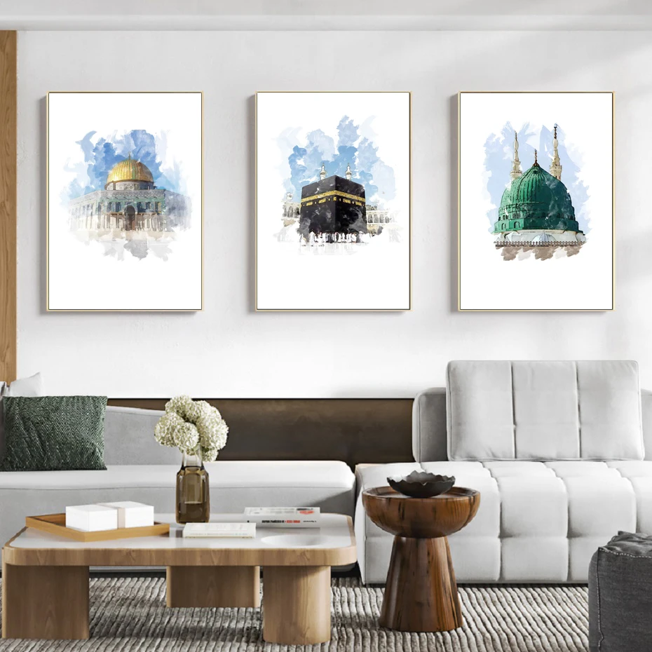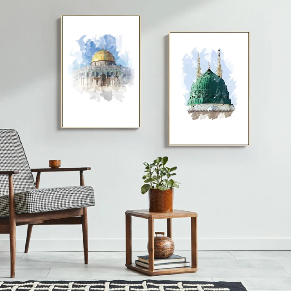 Исламская мусульманская мечеть Аллах, минималистическая ручная роспись, архитектура, холст, живопись, Постер, гостиная, коридор, художественное украшение
