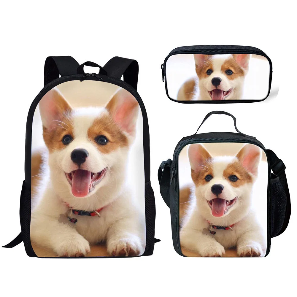 Школьный рюкзак для девочек, 3 шт.компл., с 3D-принтом корги